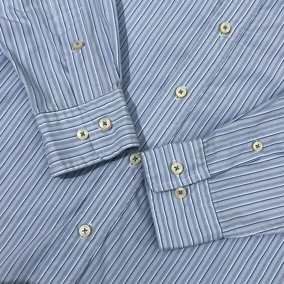 90s CHAPS チャップス CUSTOM FIT ストライプ 長袖シャツ L/ブルー系 メンズ ビンテージ