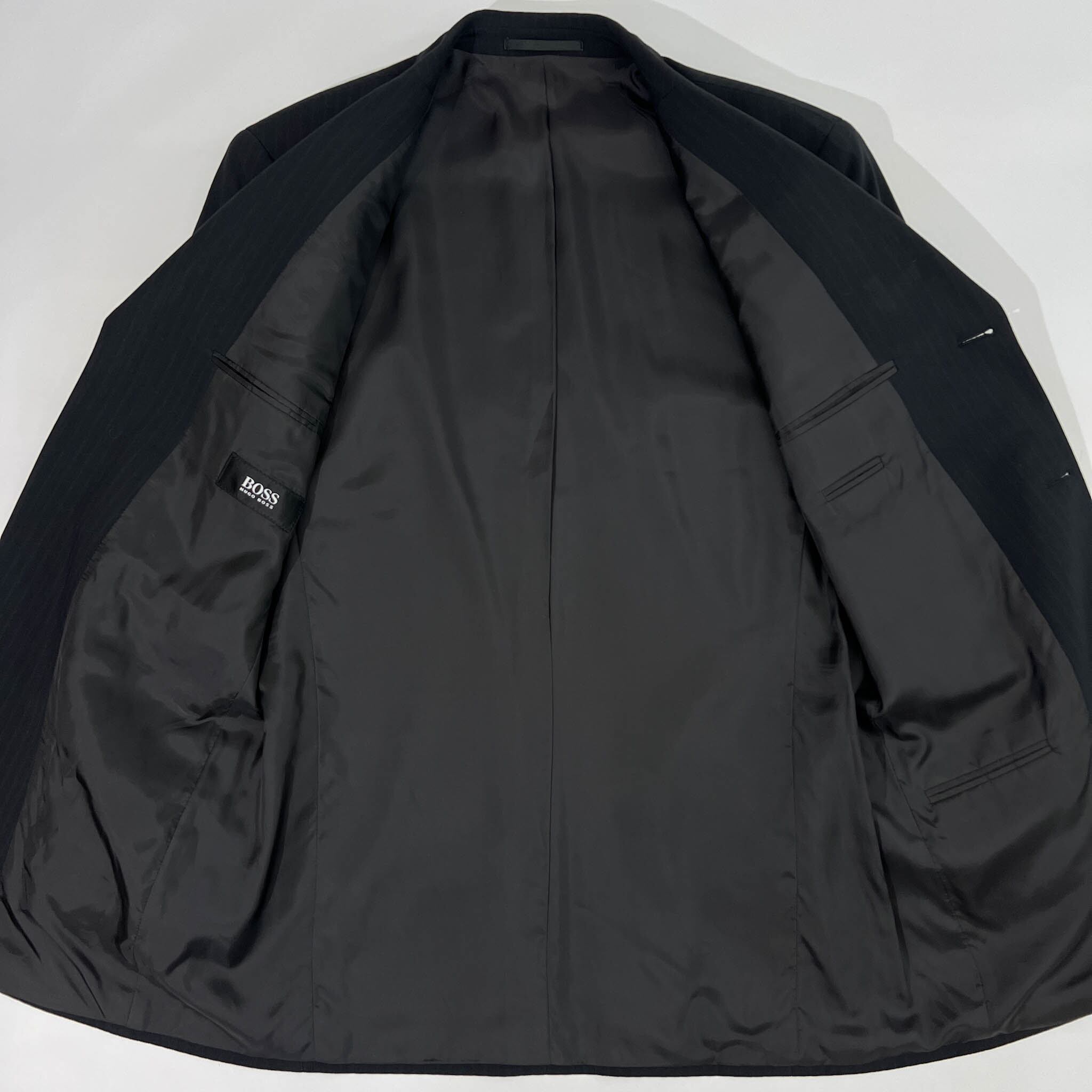上下 BOSS ボス シャドーストライプ テーラードジャケット スラックス スーツ 46/ブラック メンズ