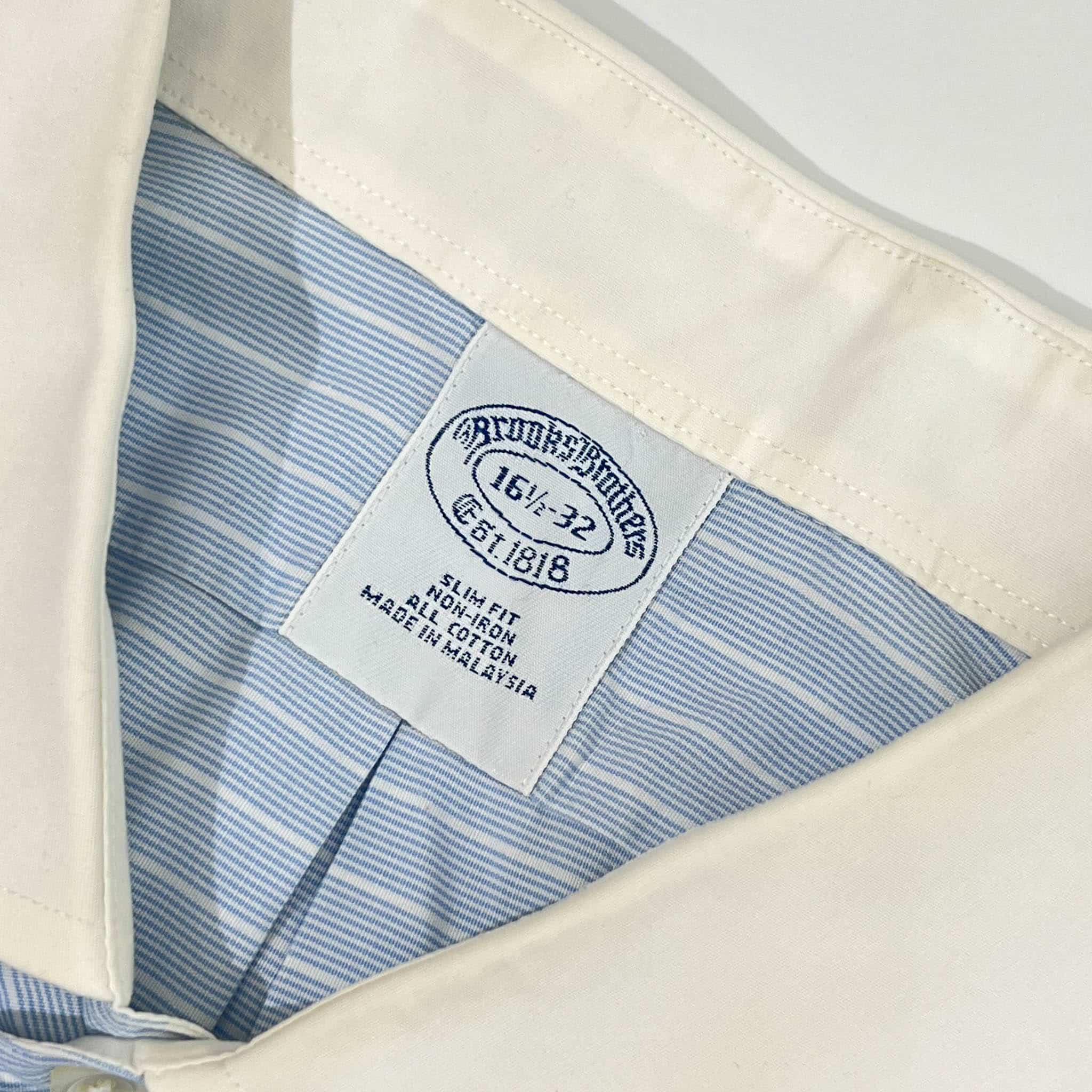 Brooks Brothers ブルックスブラザーズ ストライプ NON-IRON クレリック Wカフス 長袖 ドレスシャツ 16 1/2-32 /ブルー メンズ