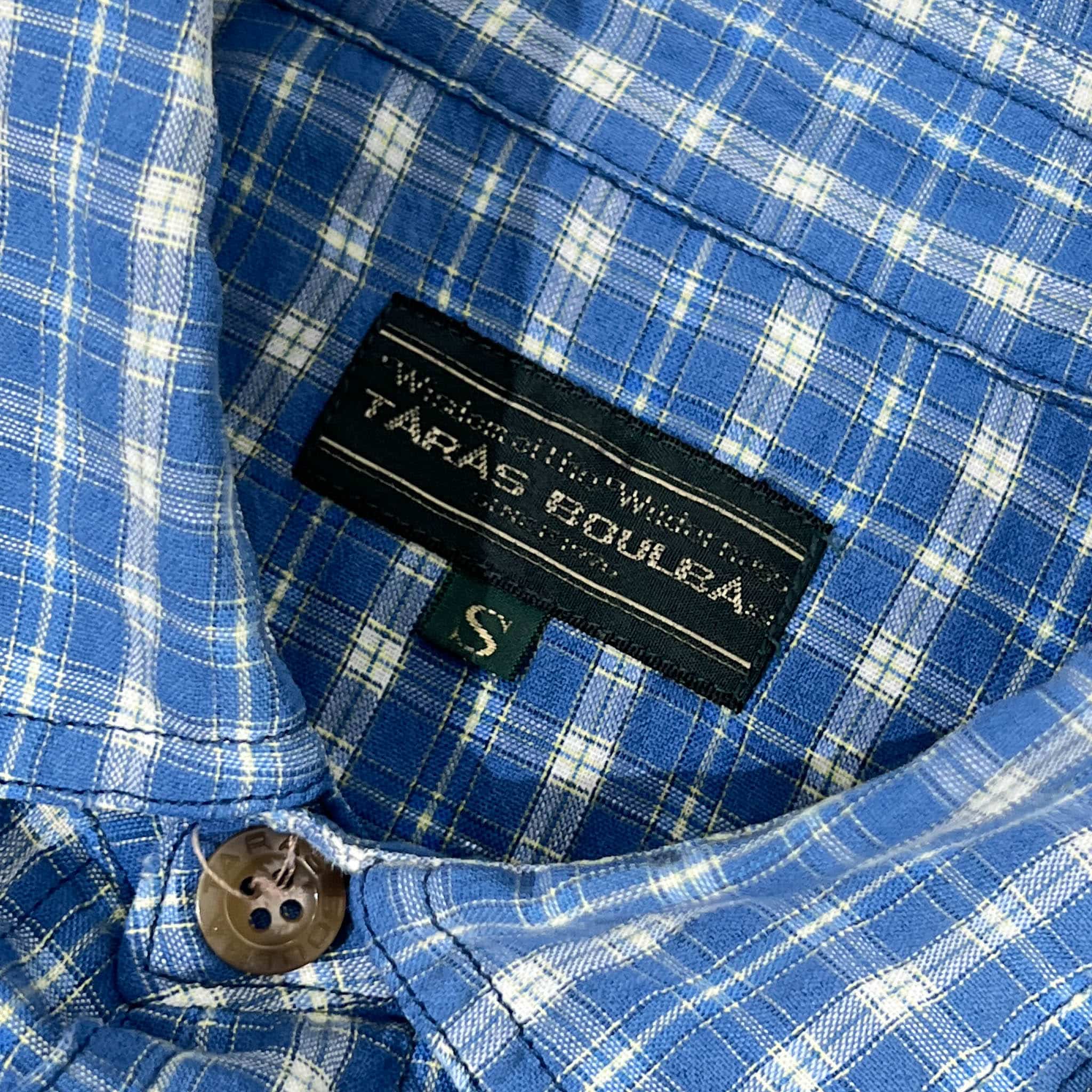 90s TARAS BOULBA タラスブルバ チェック 長袖シャツ S/ブルー/メンズ/アシックス/ビンテージ