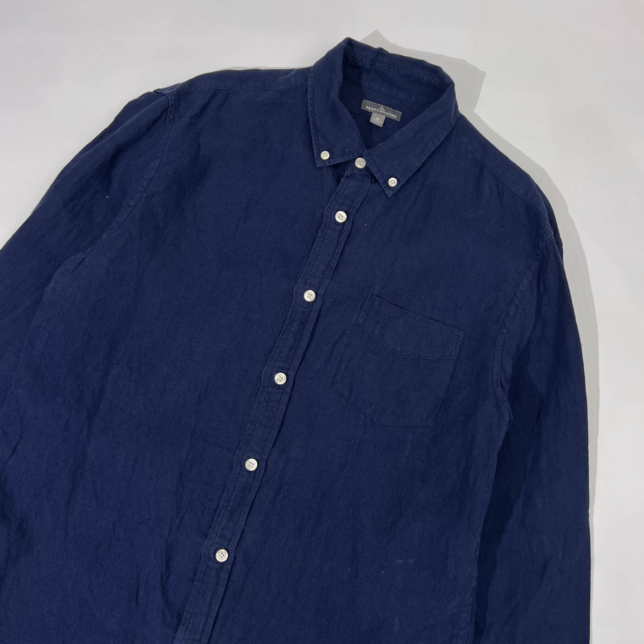 LL BEAN SIGNATURE エルエルビーン BD ボタンダウン 長袖シャツ M/ネイビー メンズ 麻