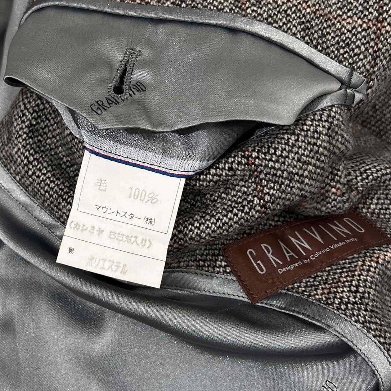 HANKYU granvino カシミヤ混 チェック柄 ステンカラーコート Sサイズ程度/比翼/阪急