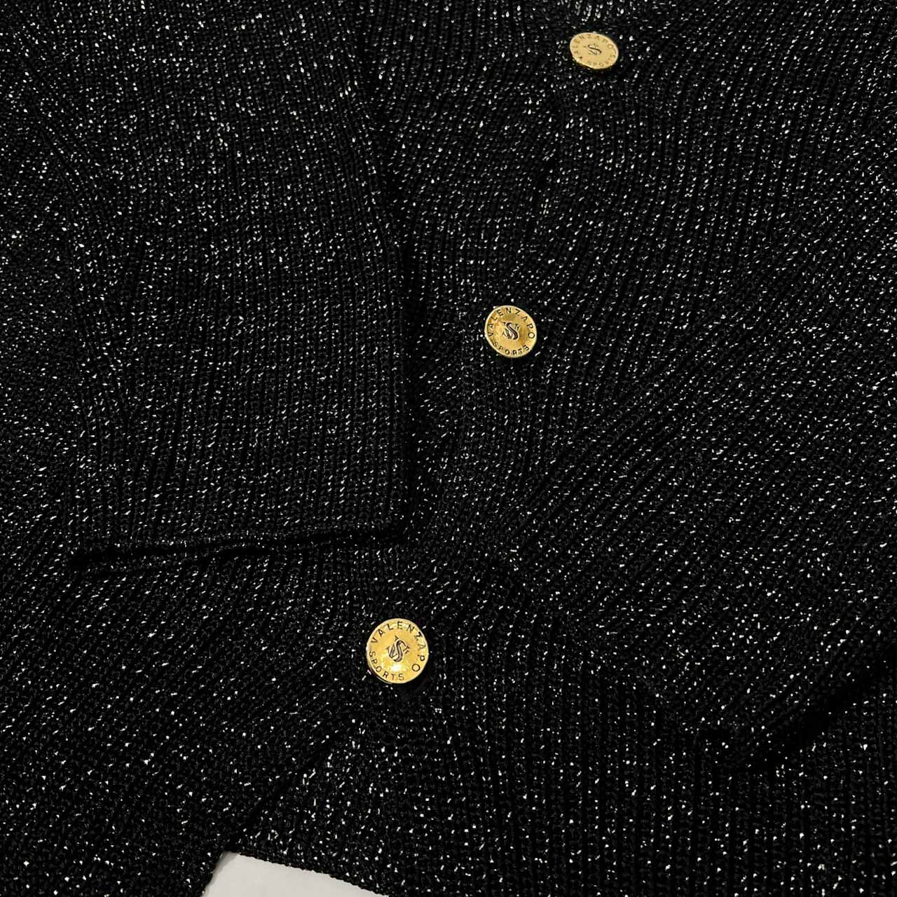 VALENZA PO バレンザポー 金ボタン ラメ入り レーヨンニット カーディガン ジャケット M /ブラック/日本製