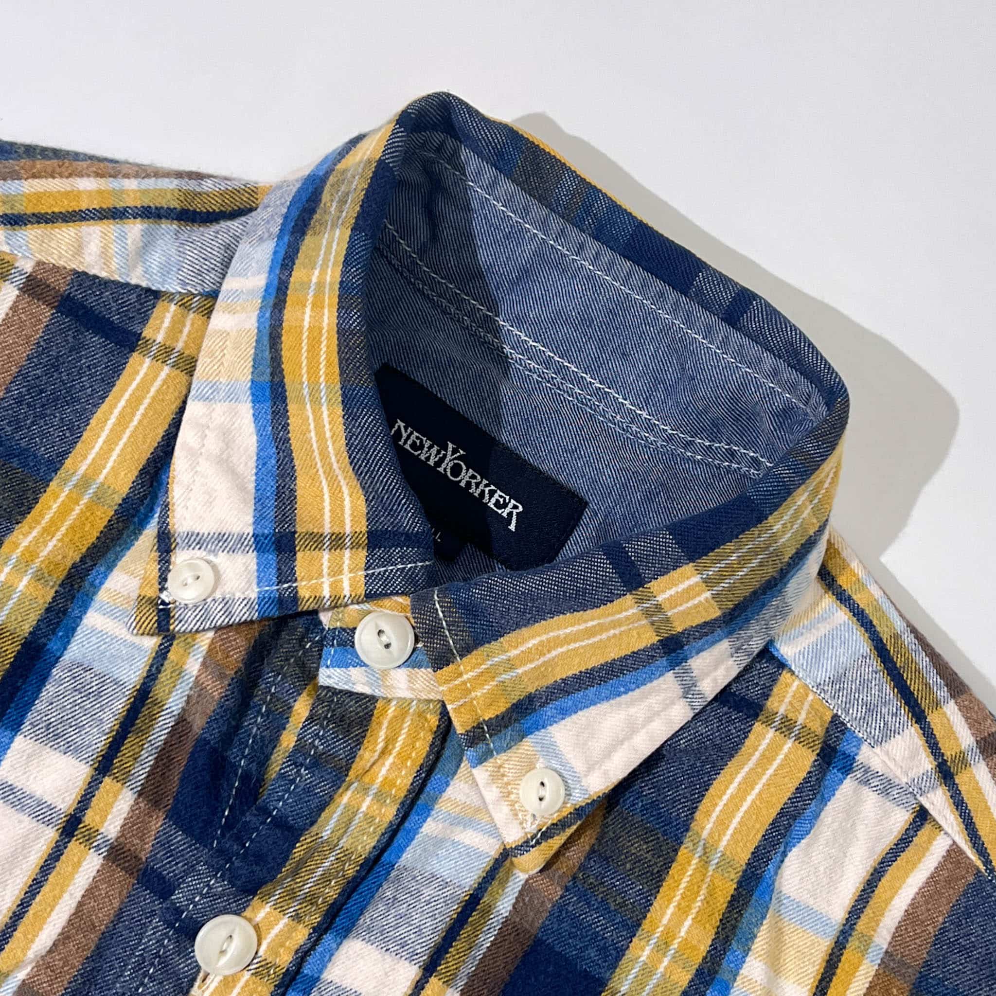 NEWYORKER ニューヨーカー チェック BD ボタンダウン 猫目ボタン 長袖 ネルシャツ S/メンズ