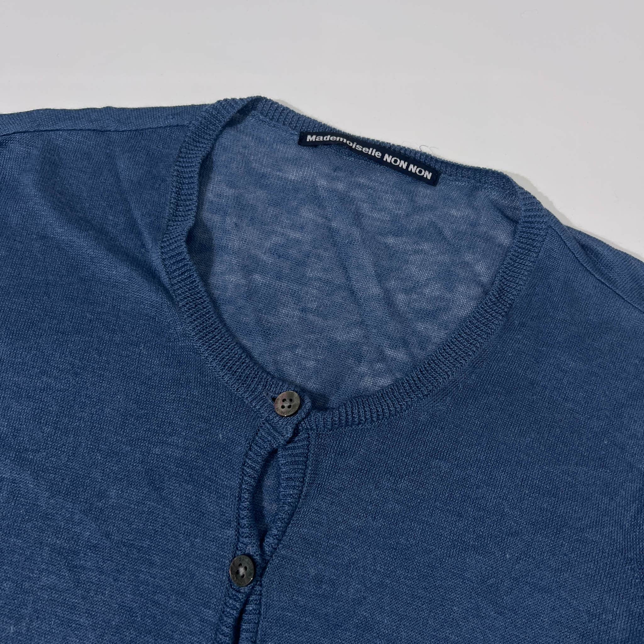 Mademoiselle NON NON マドモアゼルノンノン リネン100% ロング丈 ニットカーディガン M/ブルー/薄手