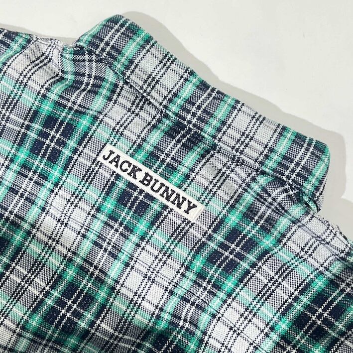 Jack Bunny!! ジャックバニー チェック 鹿の子 BD ボタンダウン 半袖 ポロワンピース シャツ 2/グリーン系 レディース