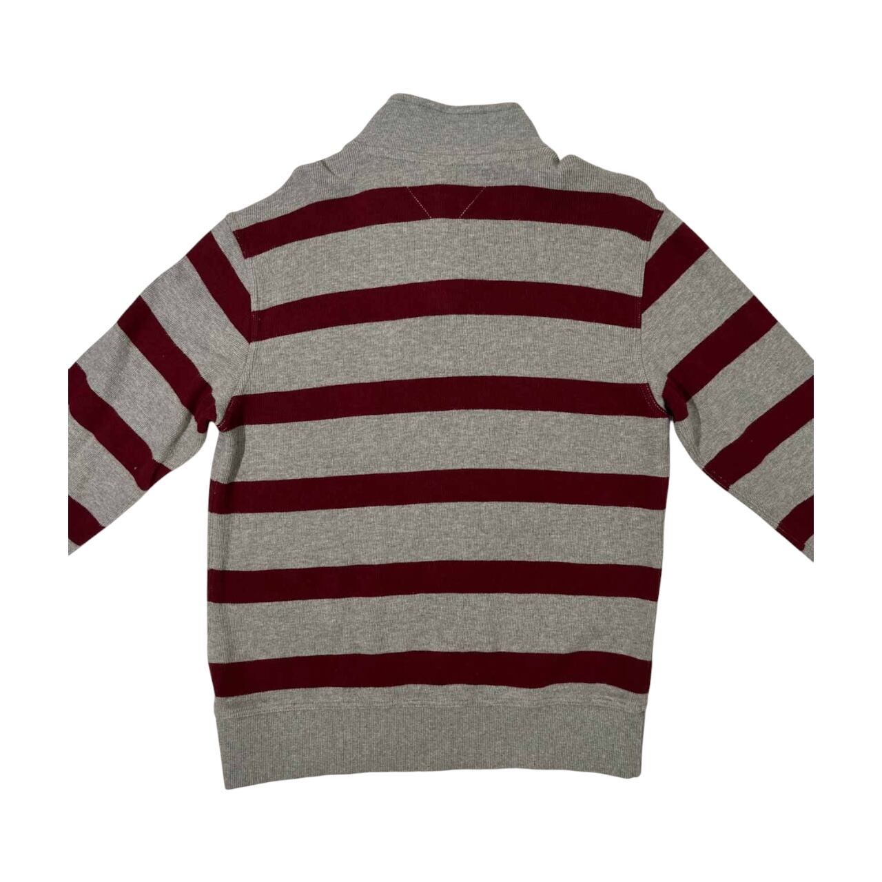 TOMMY HILFIGER トミーヒルフィガー ボーダー柄 ボタンモック ハイネック スウェット トレーナー シャツ L /グレー×ボルドー系