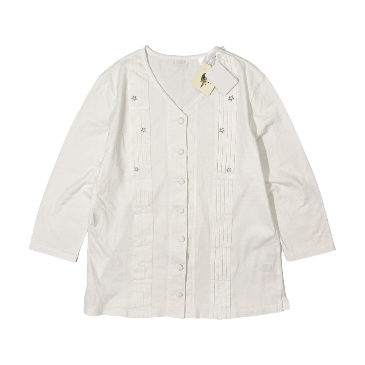 Mademoiselle NON NON マドモアゼルノンノン タグ付き 星刺繍 ピンタック 七分袖カーディガン M/ホワイト