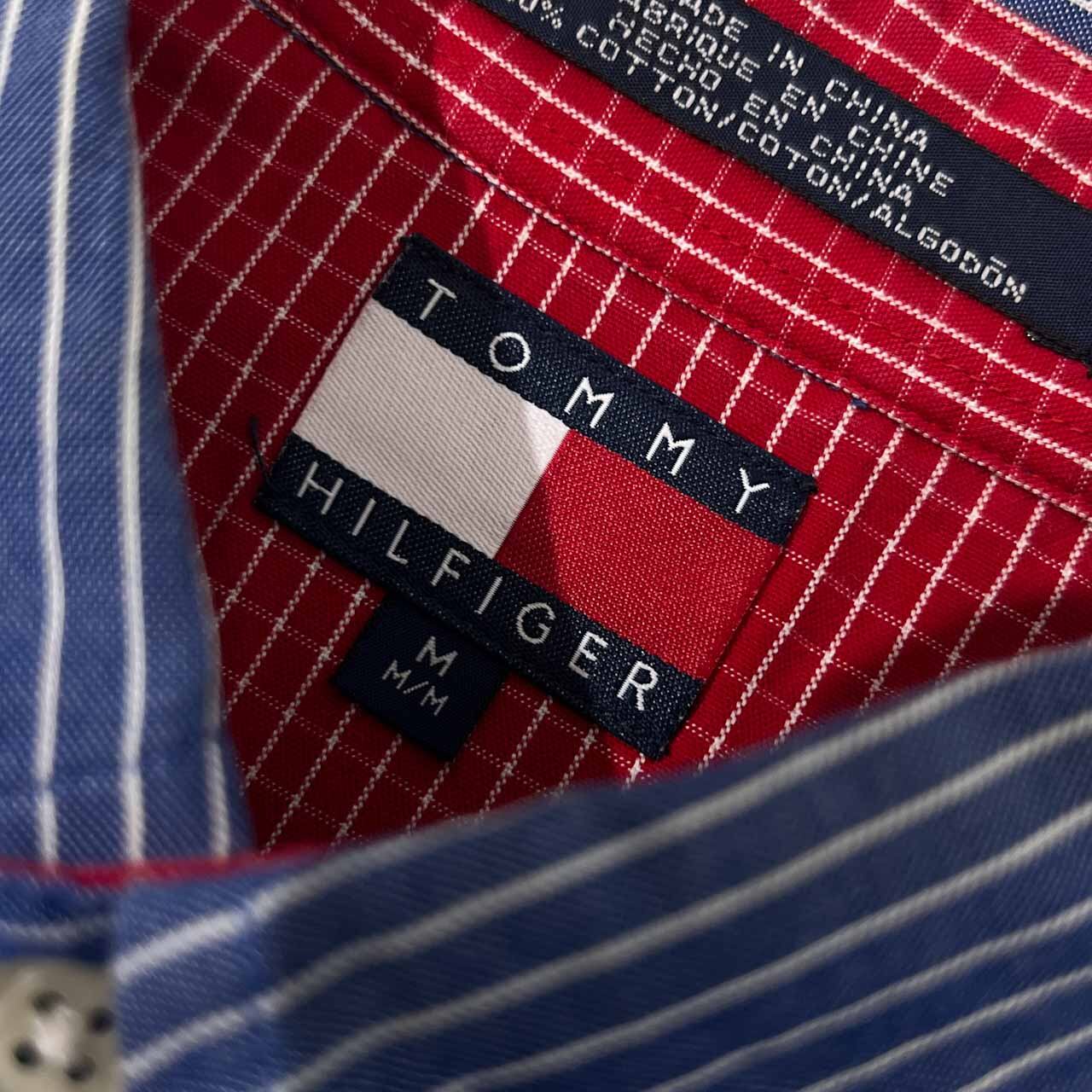 90s TOMMY HILFIGER トミーヒルフィガー ストライプ BD ボタンダウン 長袖シャツ M/ブルー メンズ ビンテージ