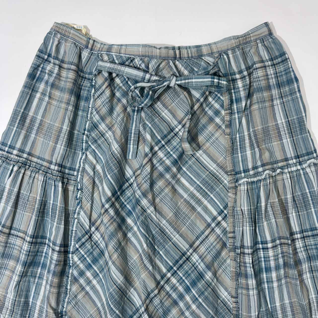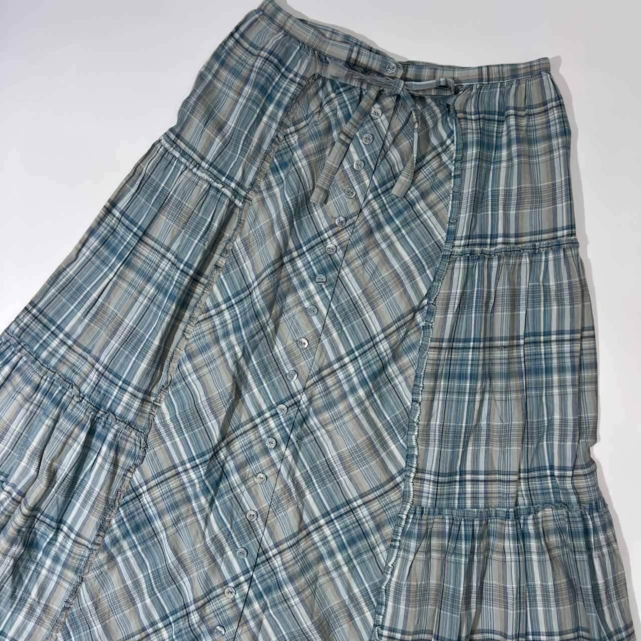 PINK HOUSE ピンクハウス 前ボタン チェック柄 ロング ティアードスカート /水色/レトロ/日本製
