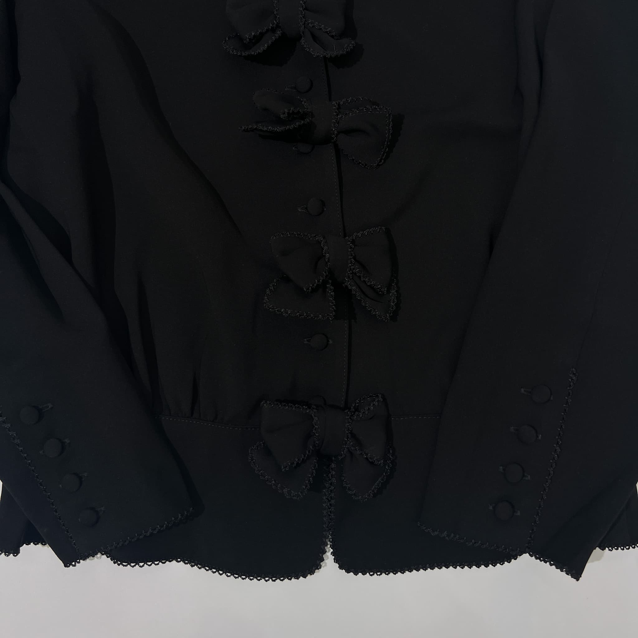 美品 KANEKO ISAO カネコイサオ リボン デザイン セットアップ ブラウス シャツ ジャケット フレアスカート /黒 ブラック/ビンテージ
