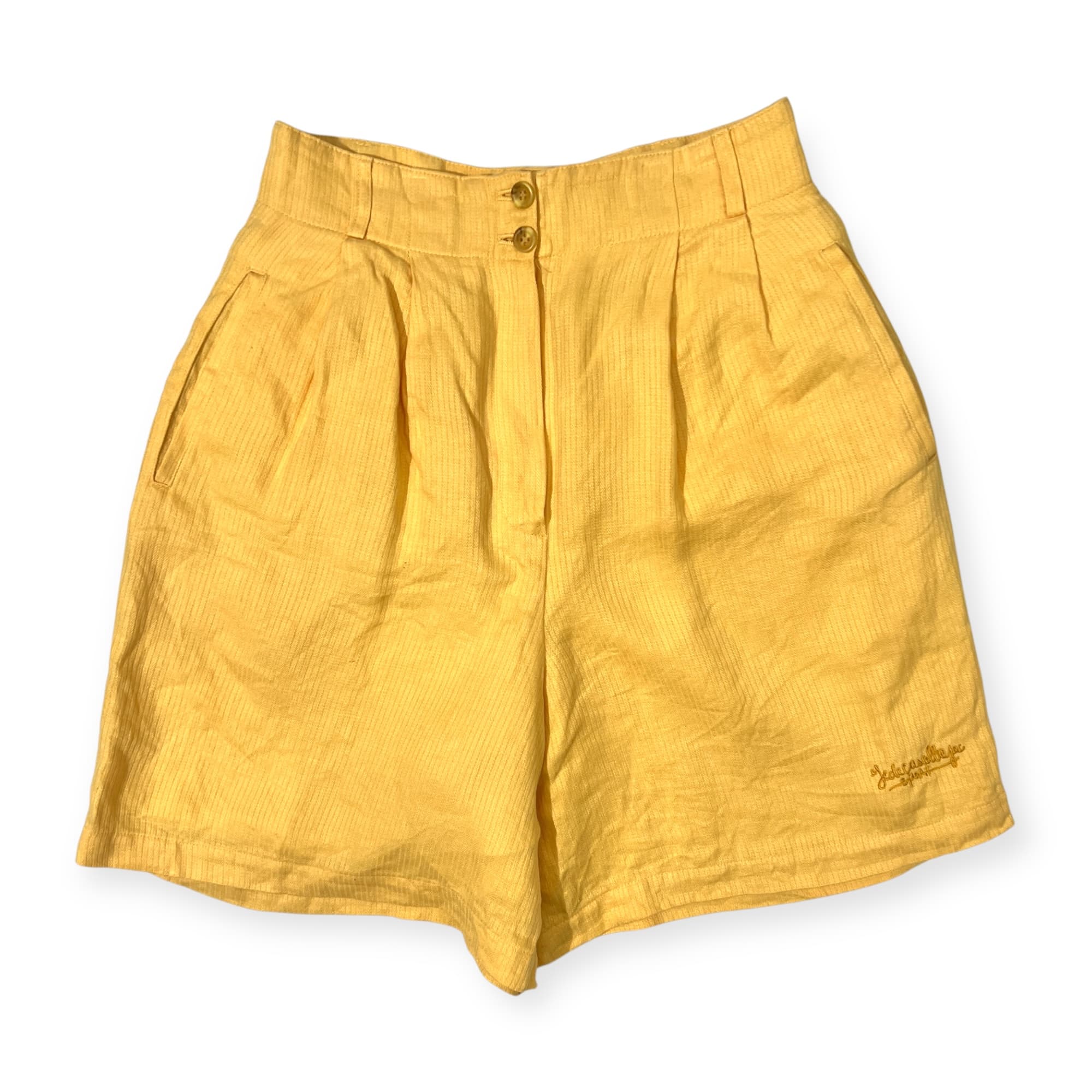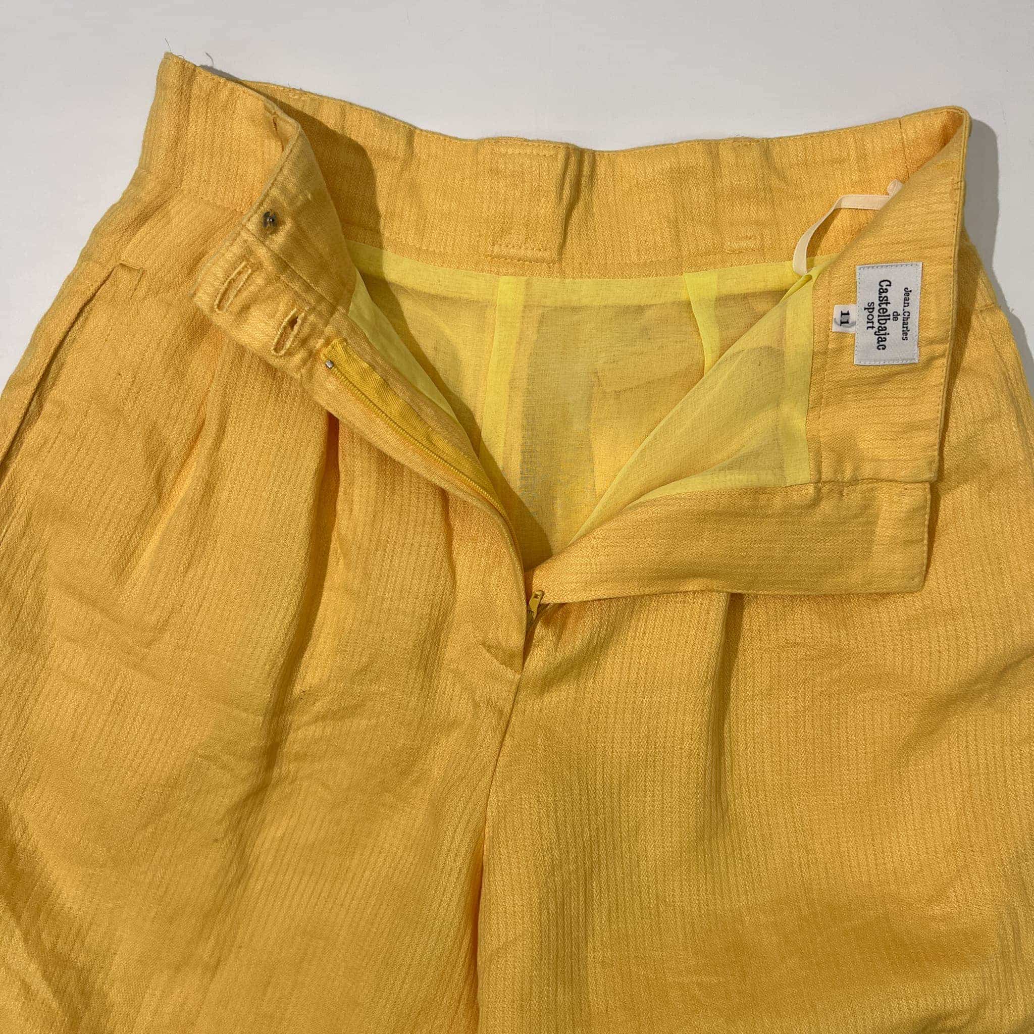 Castelbajac カステルバジャック キャラ刺繍入り タック入り リネン キュロット ショートパンツ 11 /イエロー/裏地付き/日本製