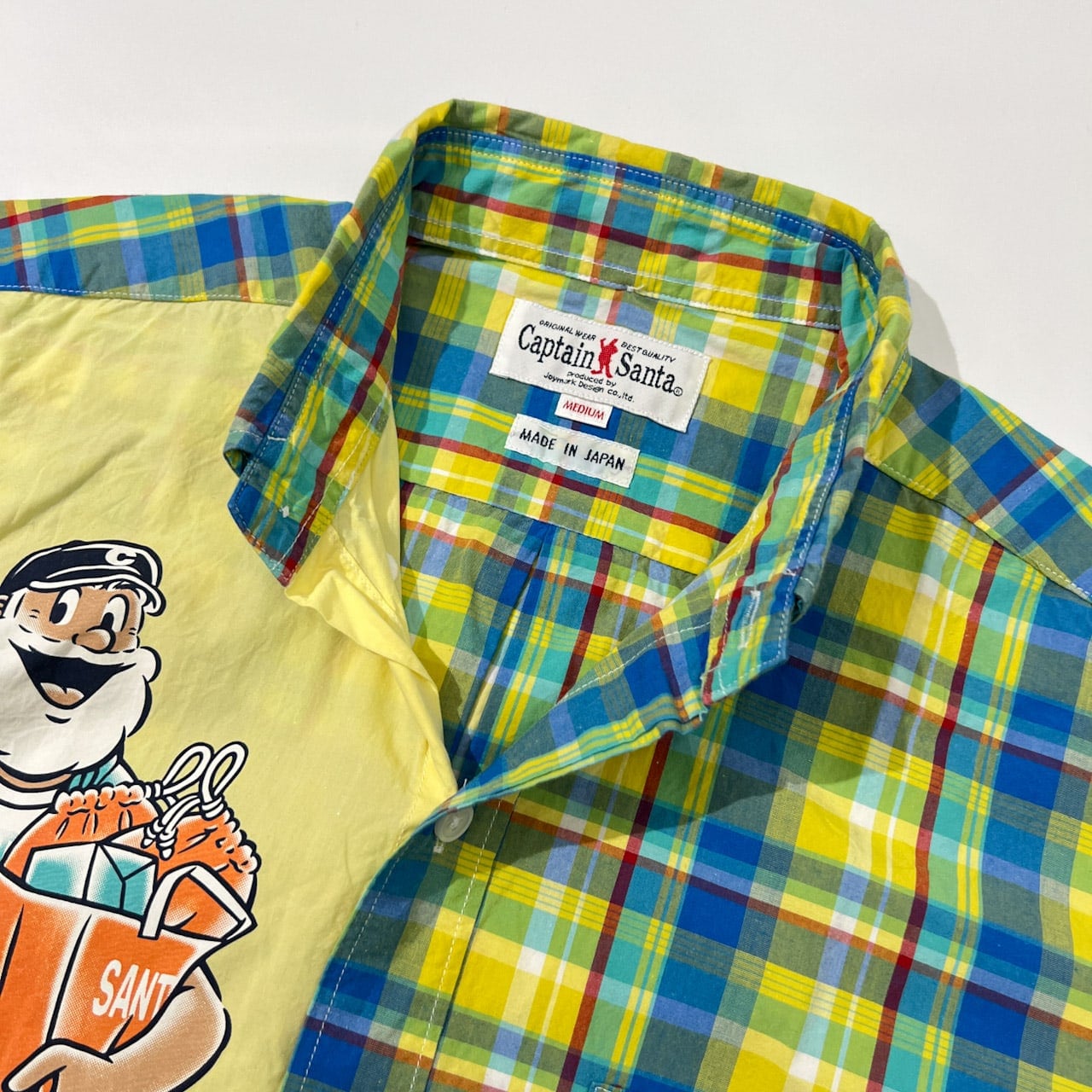 CAPTAIN SANTA キャプテンサンタ マドラスチェック切替 BD 半袖シャツ M/ブルー イエロー