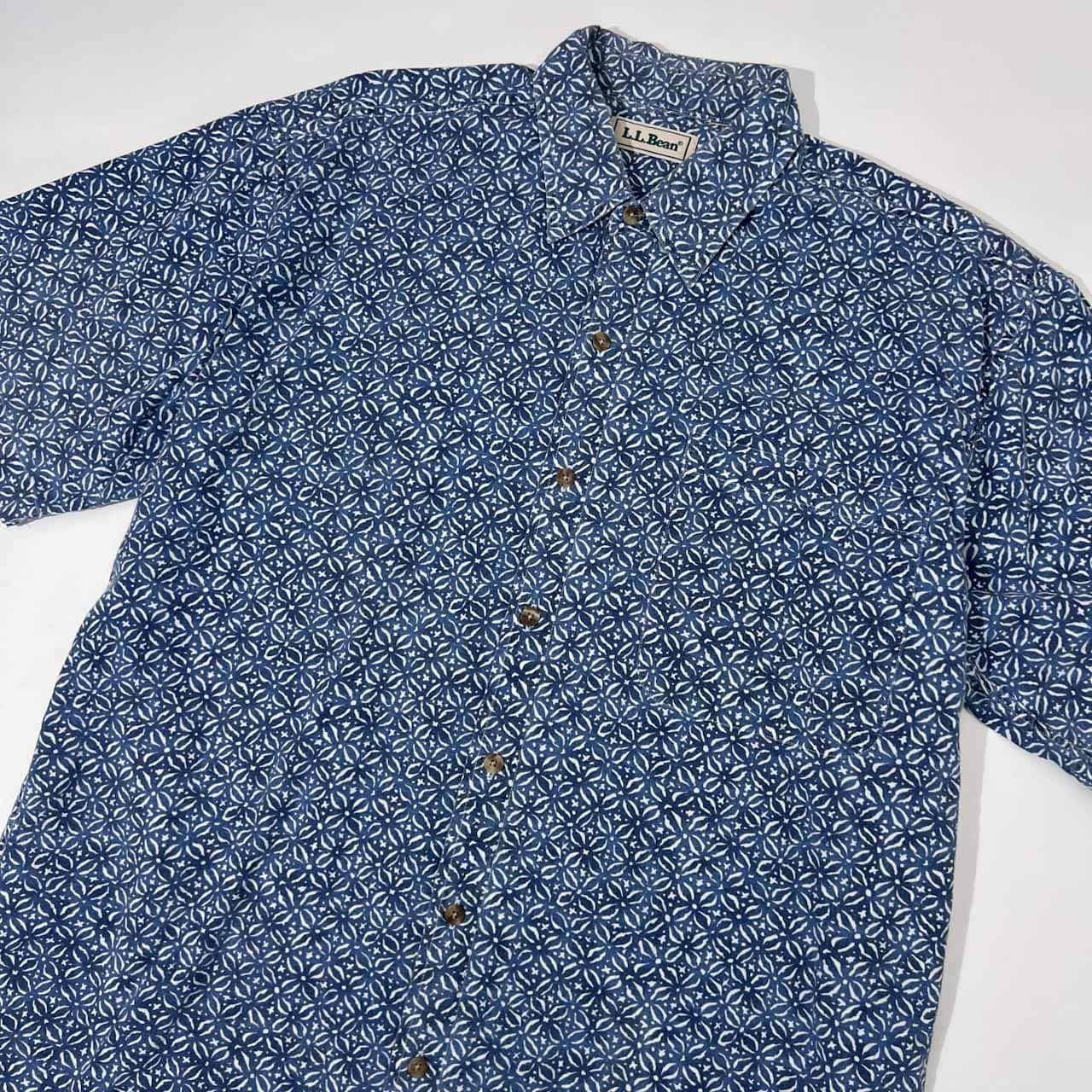 70s 80s L.L.Bean エルエルビーン 半袖 シャツ アロハシャツ L~LL程度 /ネイビー系/ビンテージ