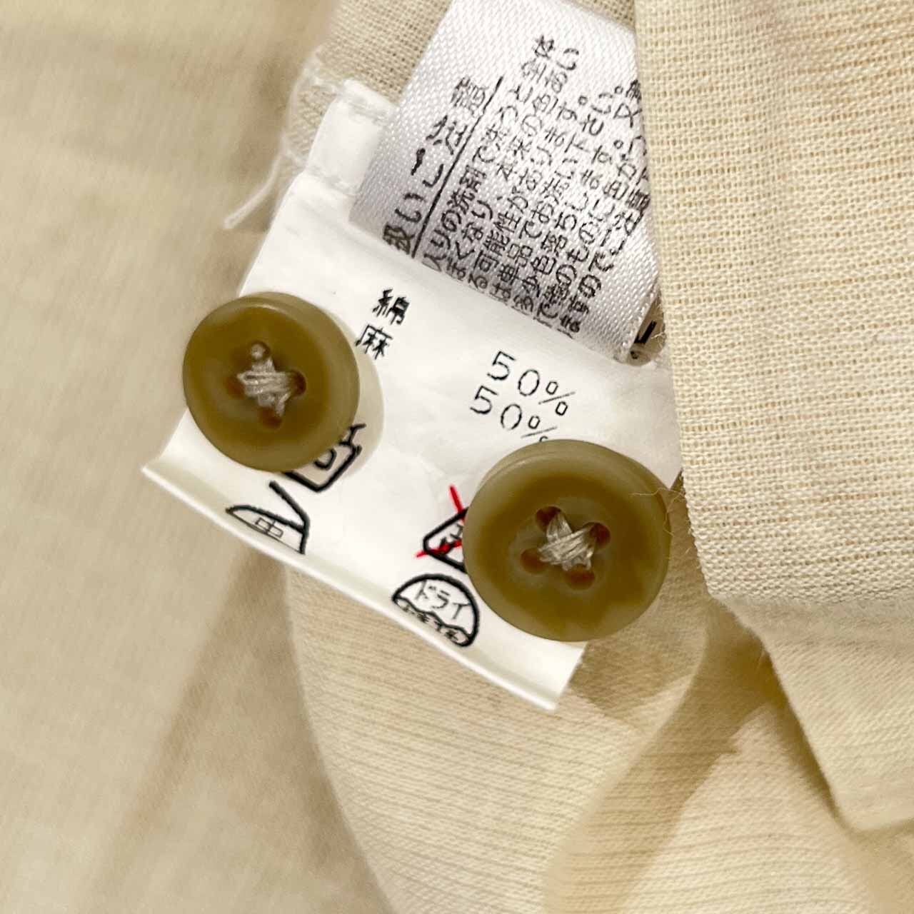 VAGIIE バジエ キャラ刺繍入り コットン&リネン ボタンダウン BD 半袖 シャツ 46 /ベージュ系/日本製