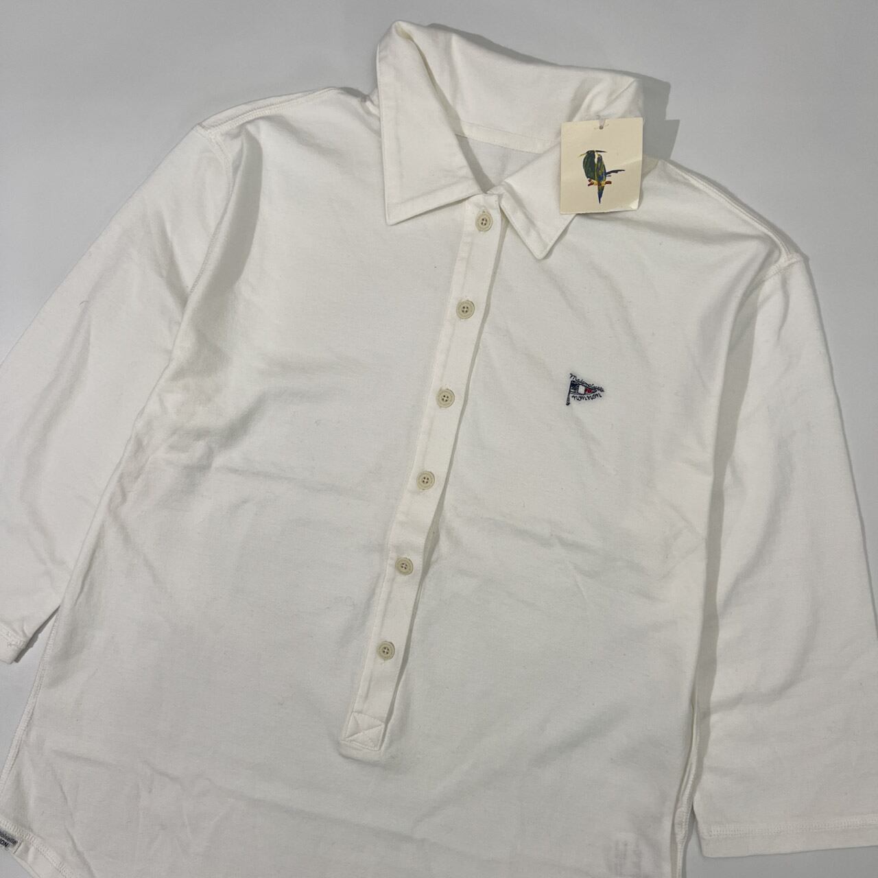 Mademoiselle NON NON マドモアゼルノンノン タグ付き フラッグ刺繍 七分袖 ポロシャツ M/ホワイト