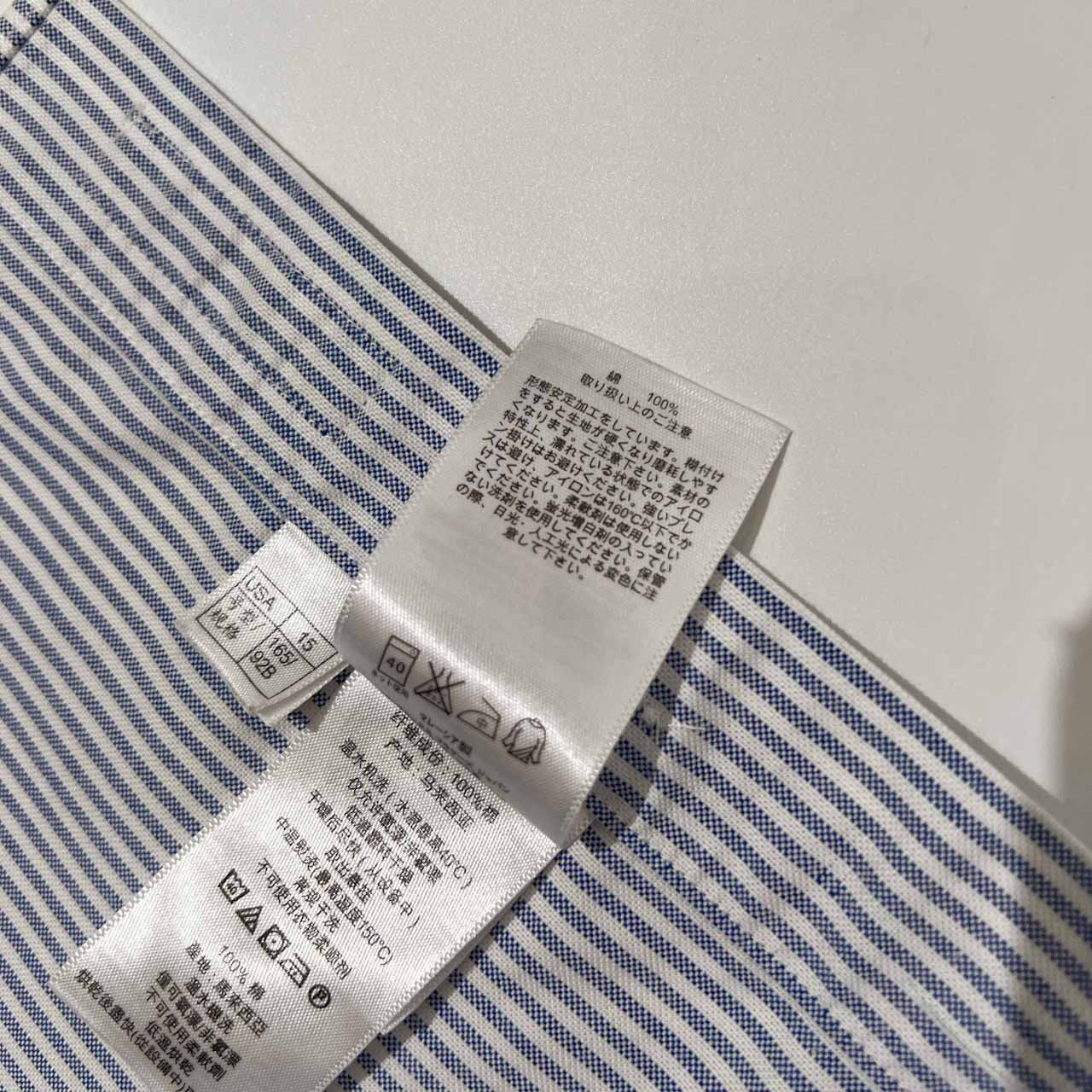 Brooks Brothers ブルックスブラザーズ ストライプ柄 BD 半袖 オックスフォード シャツ 15 /メンズ/ノンアイロン/水色系
