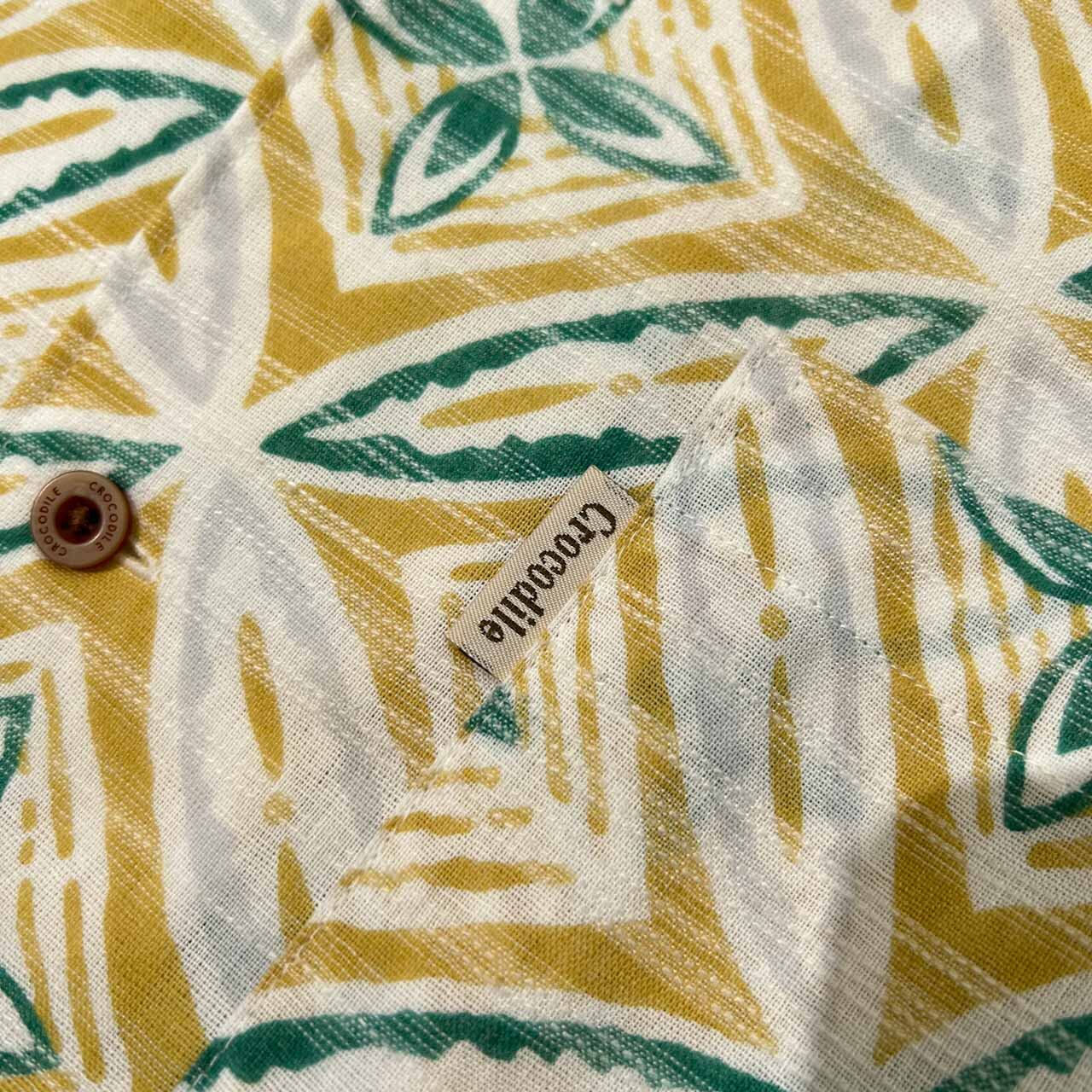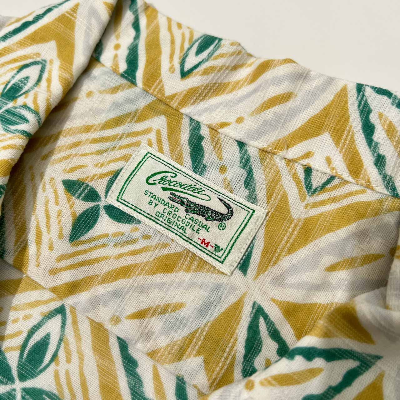 美品 Crocodile クロコダイル 総柄 オープンカラー 開襟 半袖 アロハシャツ サイズ M /メンズ/イエロベージュ×グリーン