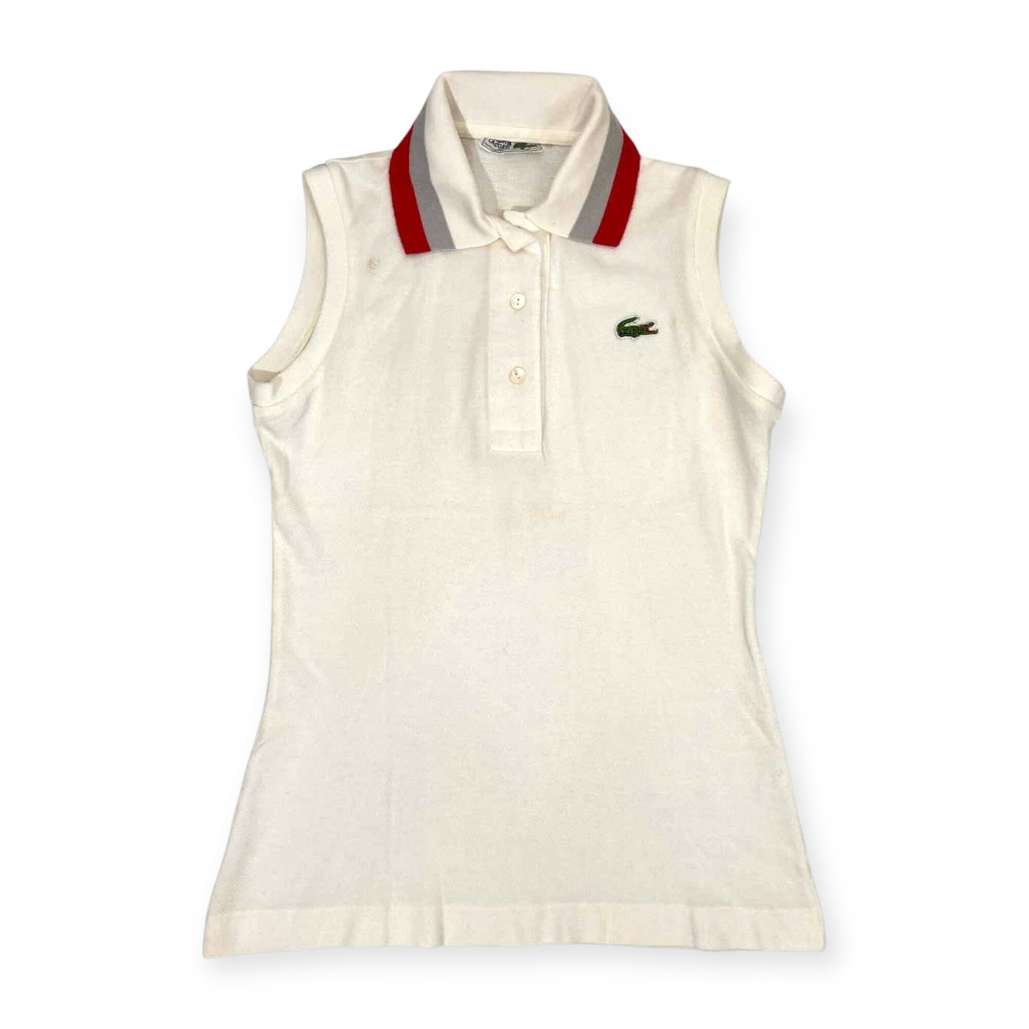 80s CHEMISE LACOSTE シュミーズラコステ 鹿の子ノースリーブ ポロシャツ/ホワイト レディース 文字ワニ ビンテージ