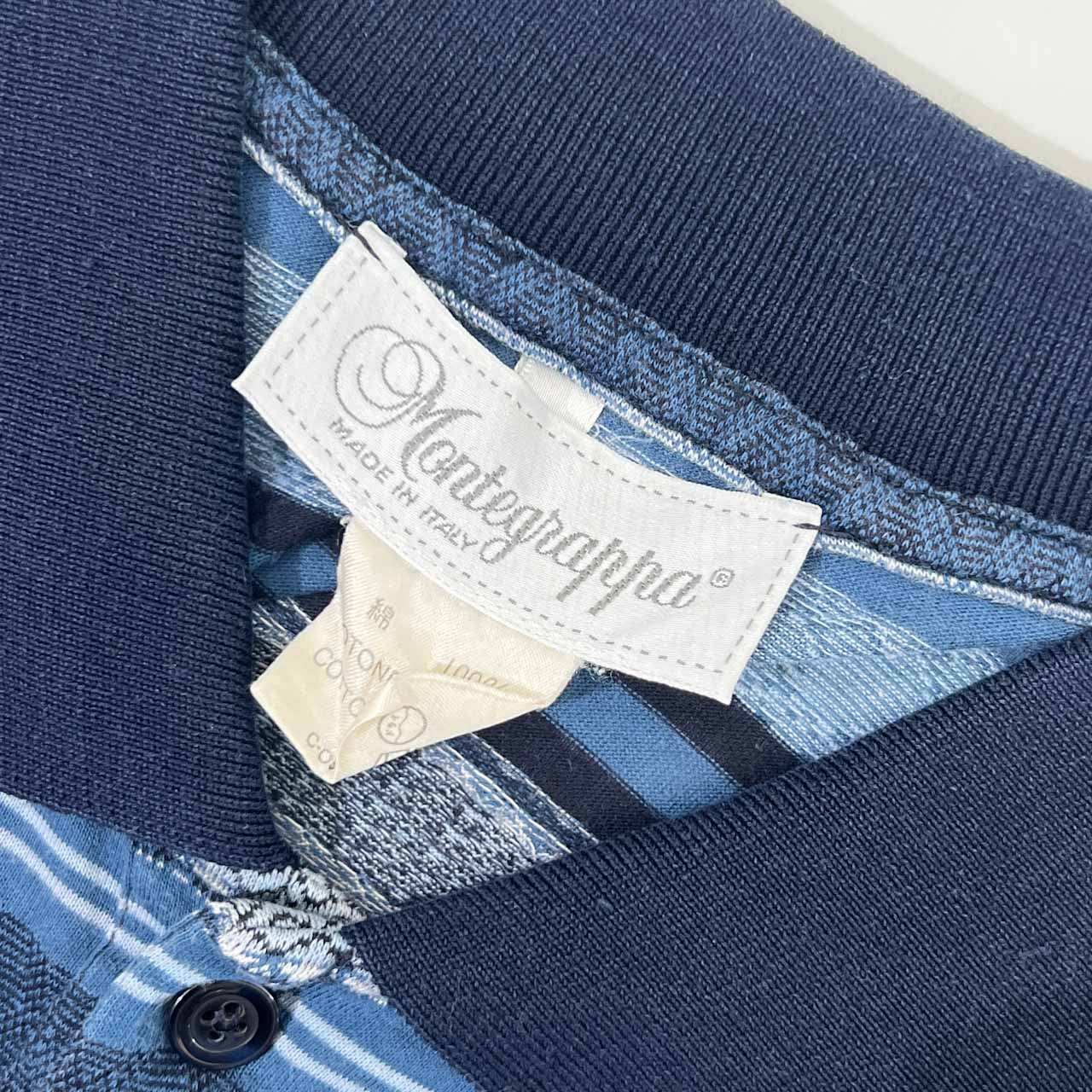 イタリア製 Montegrappa モンテグラッパ ボーダー 半袖 ポロシャツ 50/ブルー系 メンズ