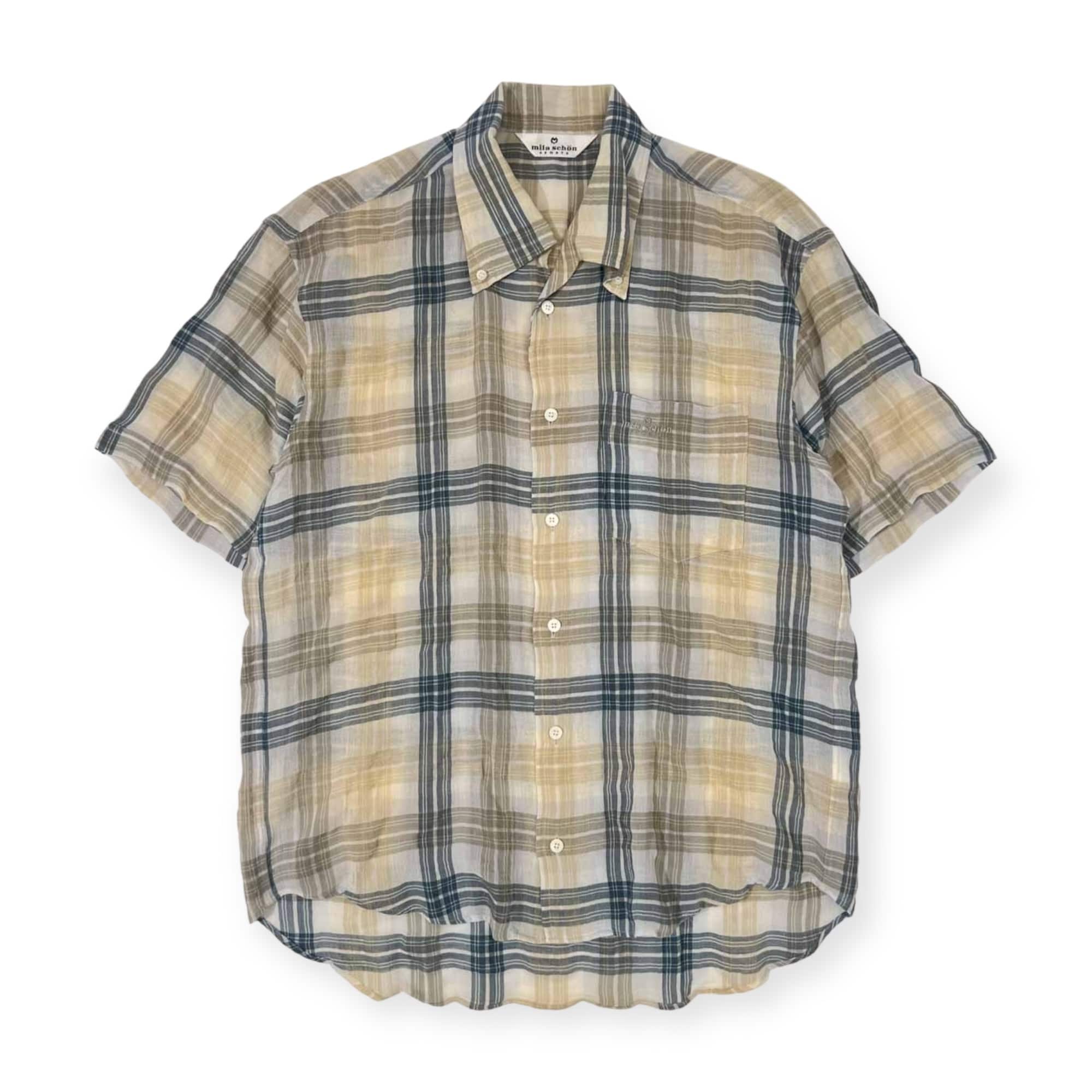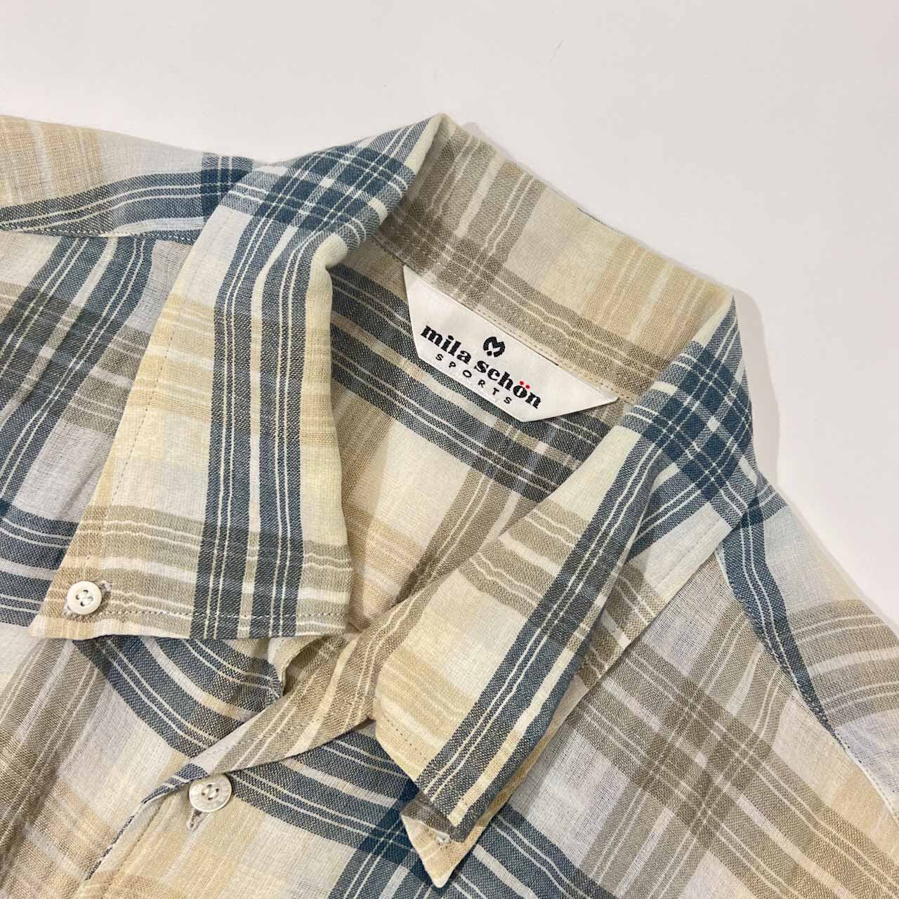 リネン混 mila schon SPORTS ミラショーン チェック BD ボタンダウン 開襟 半袖シャツ165~175/メンズ ゴルフ