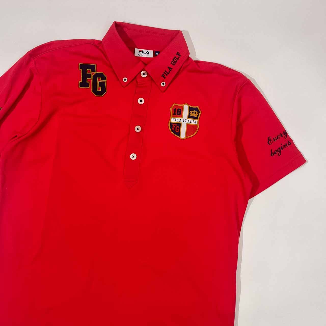FILA GOLF フィラ ゴルフ トリコロール デコ 鹿の子 半袖 ポロシャツ M/レッド メンズ