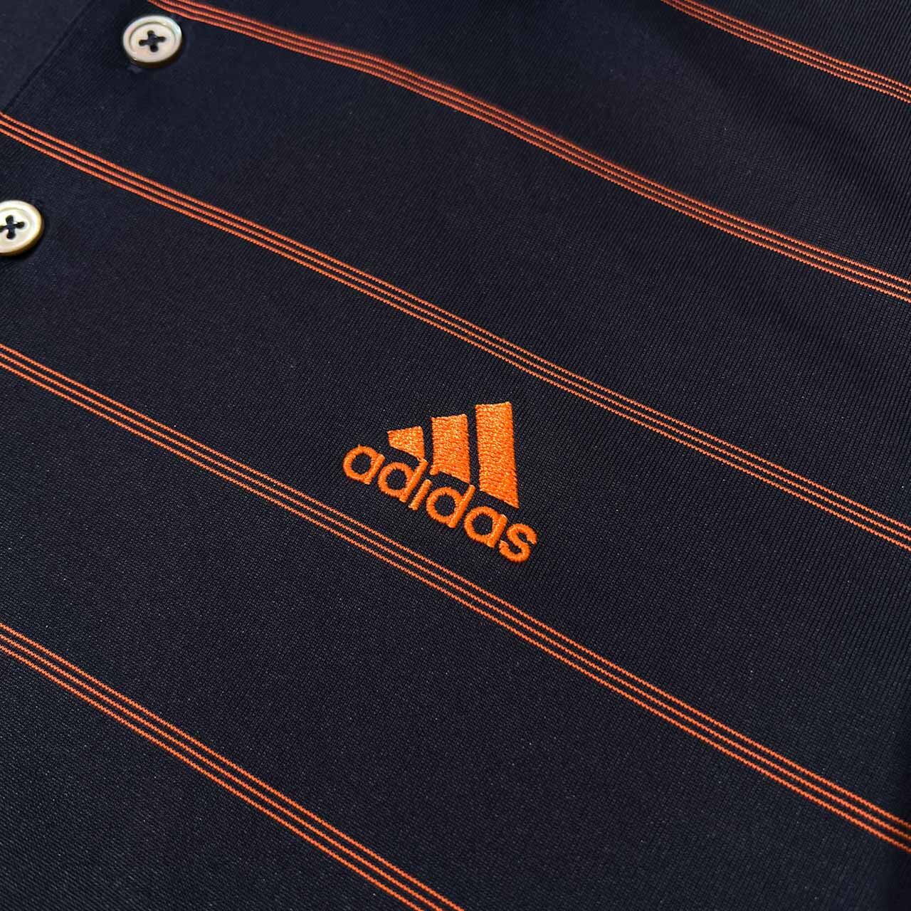 adidas GOLF アディダス ゴルフ ボーダー柄 半袖 ドライ ポロシャツ L /メンズ/ネイビー×オレンジ/スポーツ