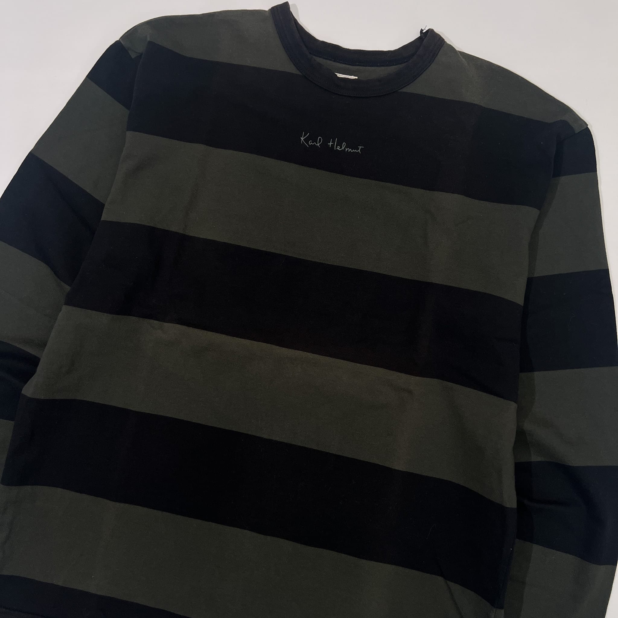 Karl Helmut カールヘルム ロゴプリント ボーダー 柄 長袖Tシャツ カットソー サイズ M /ブラック ダークグリーン