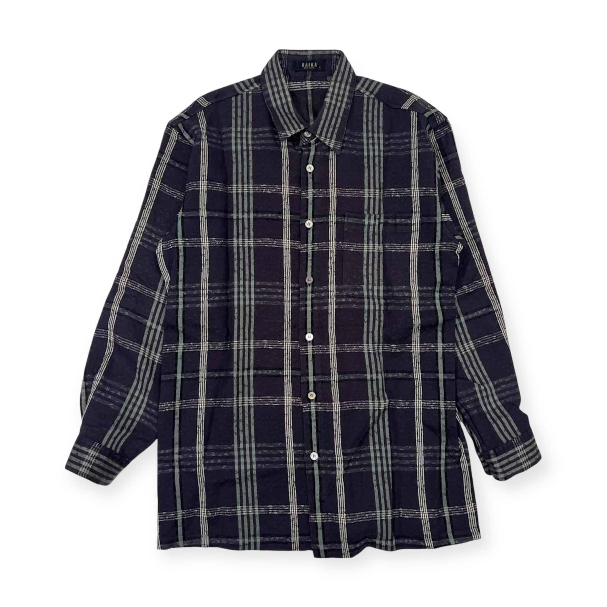 90s RAIKA NEW BASIC ライカ チェック 長袖シャツ M/ネイビー×グリーン系 メンズ ビンテージ