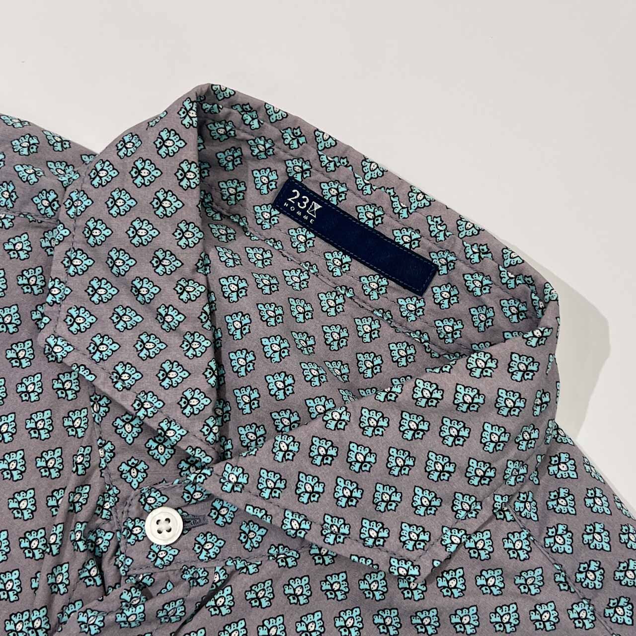 23区 HOMME ニジュウサンクオム 花柄 総柄 ワイドカラー 長袖シャツ 48/グレー×水色 メンズ