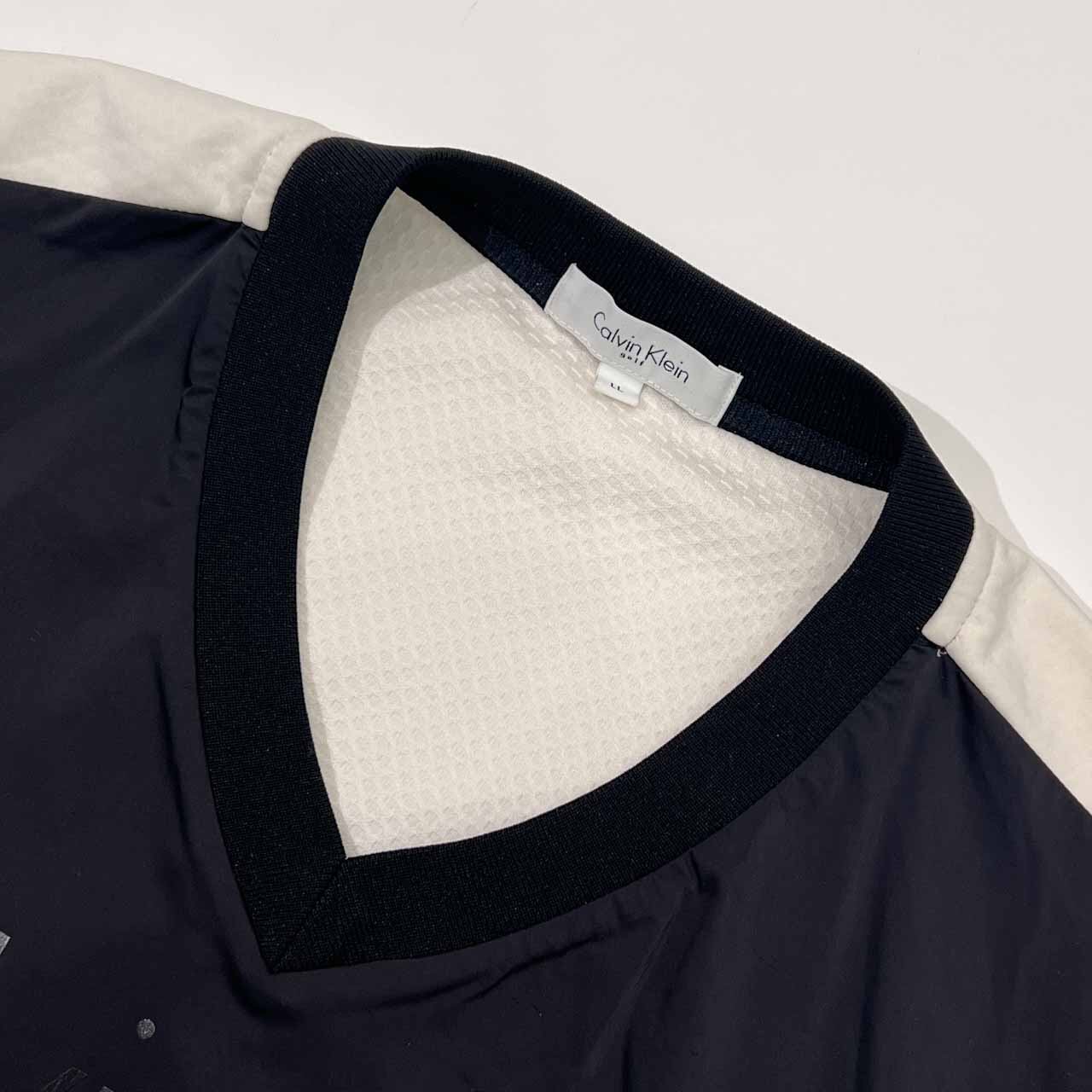 Calvin Klein golf カルバンクライン Vネック ウインドブレーカー プルオーバーシャツ LL/ブラック×ホワイト メンズ