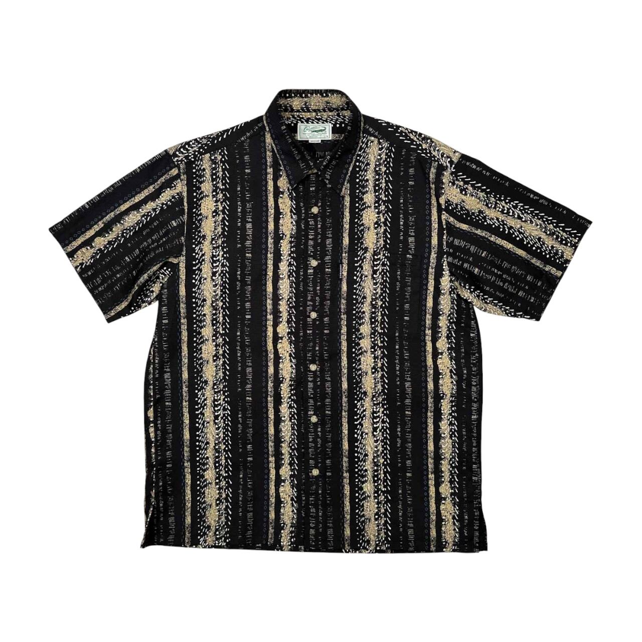 Crocodile クロコダイル ストライプ調 半袖シャツ サイズ M /メンズ/ブラック/アロハ