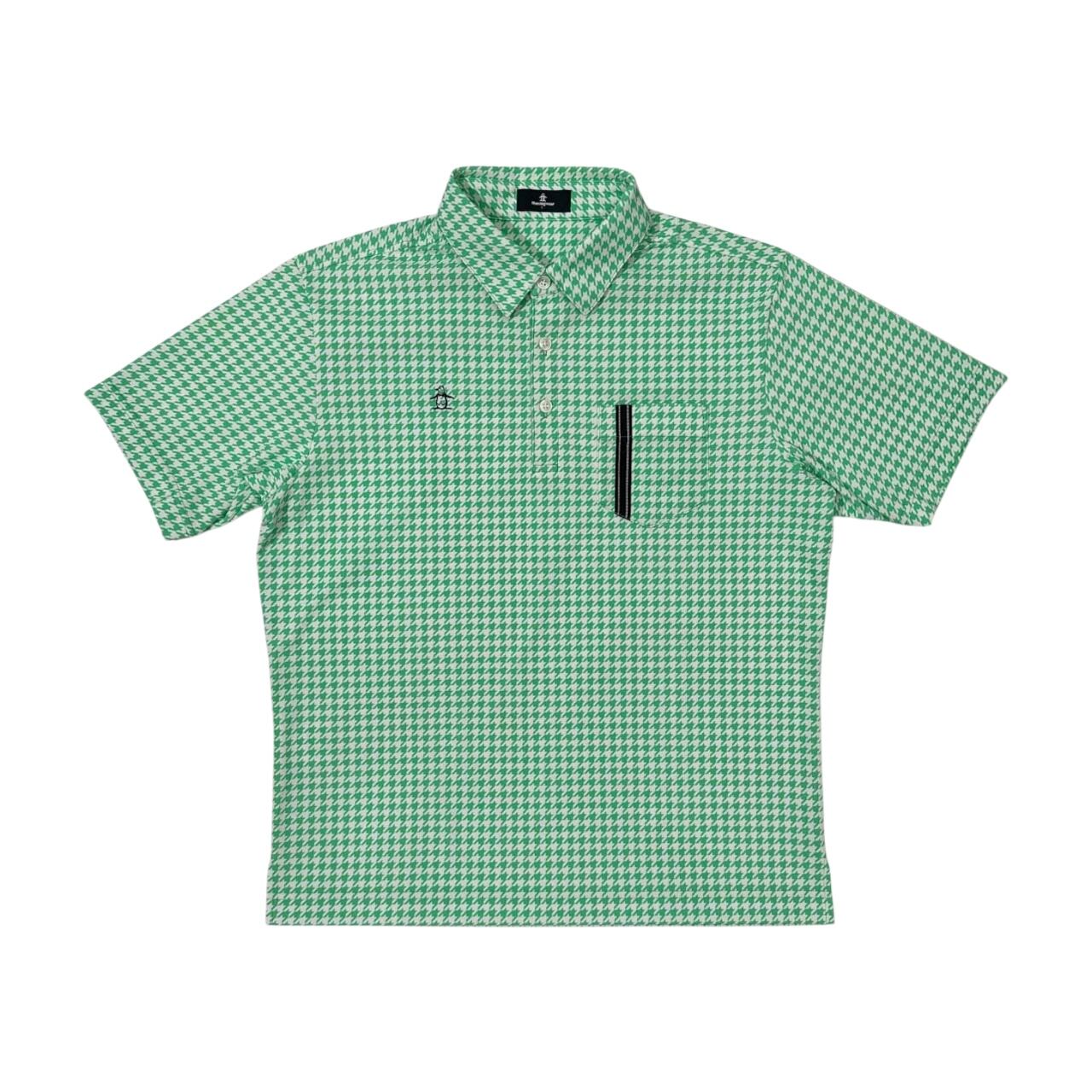 美品 Munsingwear マンシングウェア ポケット付き 千鳥格子 総柄 ドライ 半袖 ポロシャツ サイズ L /メンズ/ゴルフ/デサント/グリーン