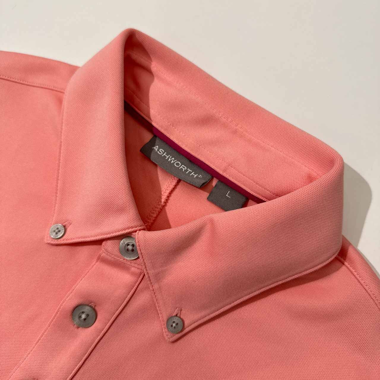 美品 ASHWORTH アシュワース BD ドライ 半袖 ポロシャツ サイズ L /メンズ/ゴルフ/ピンク系/テーラーメイドゴルフ