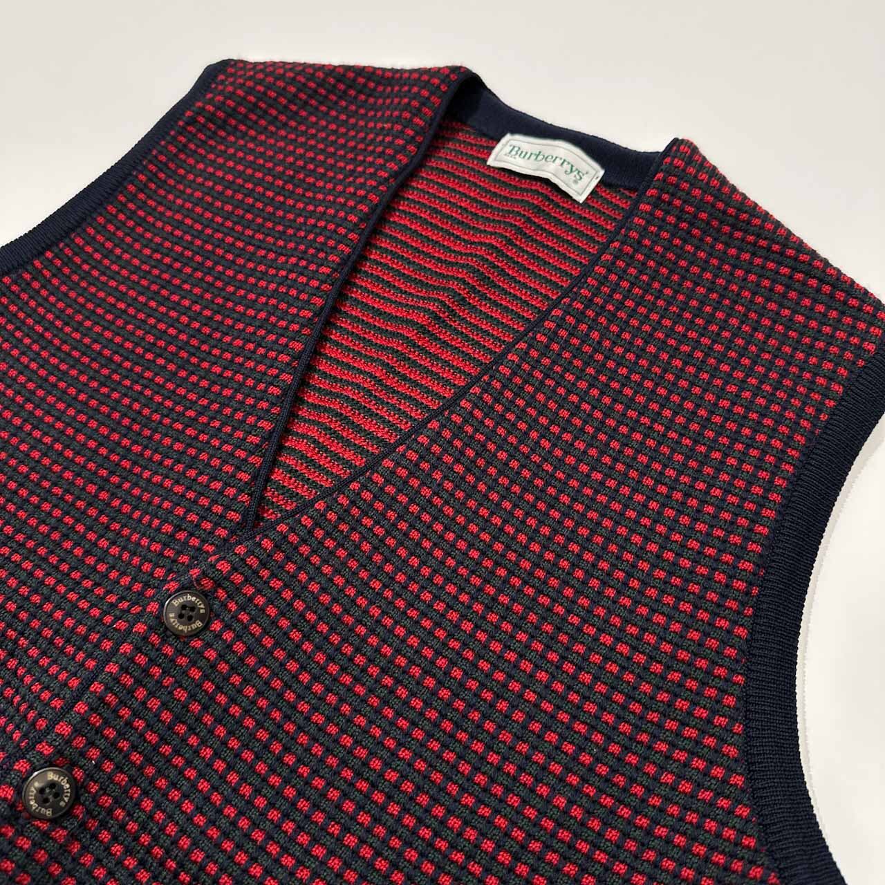 Burberrys バーバリー ロゴ刺繍 前ボタン ウールニット ベスト /レッド×ネイビー/ビンテージ