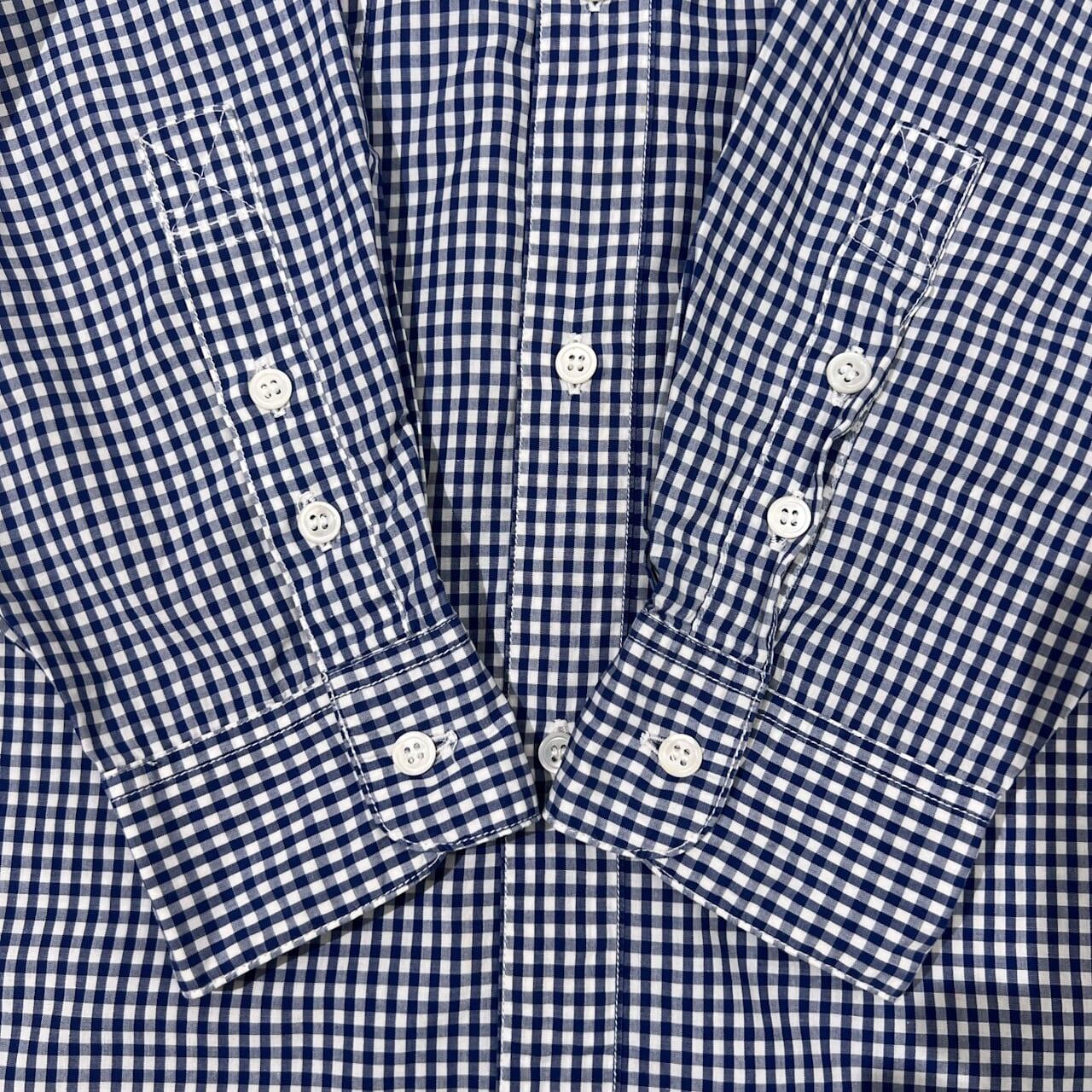 PAPAS パパス ギンガムチェック BD 七分袖シャツ M/ネイビー ホワイト