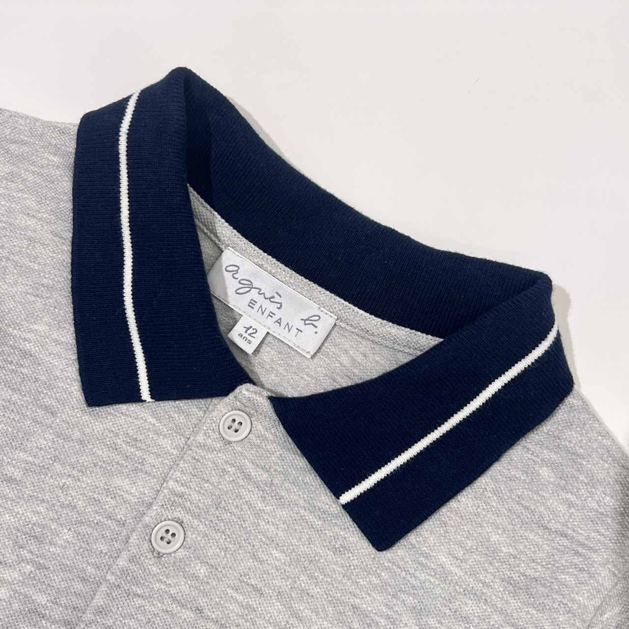 agn?s b. ENFANT アニエスベー アンファン 鹿の子 半袖 ポロシャツ 12ans/グレー キッズ ガール