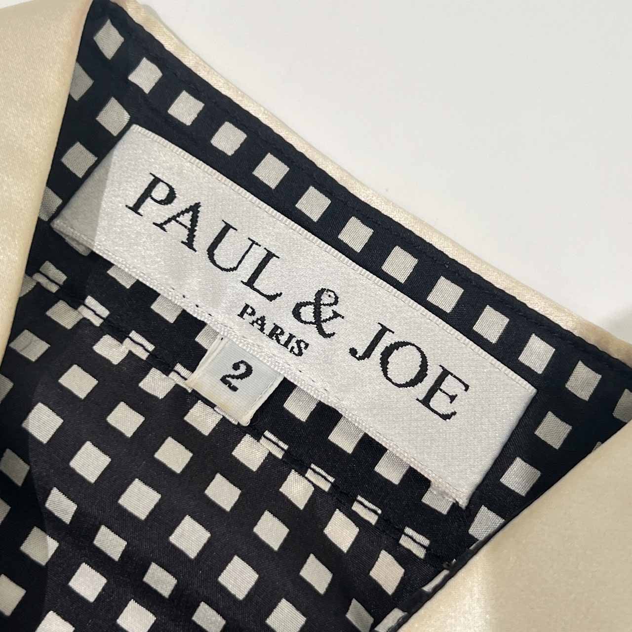 シルク100% フランス製 PAUL & JOE ポールアンドジョー チェック 襟付き半袖 シャツ ブラウス 2/ブラック×ホワイト レディース ビンテージ