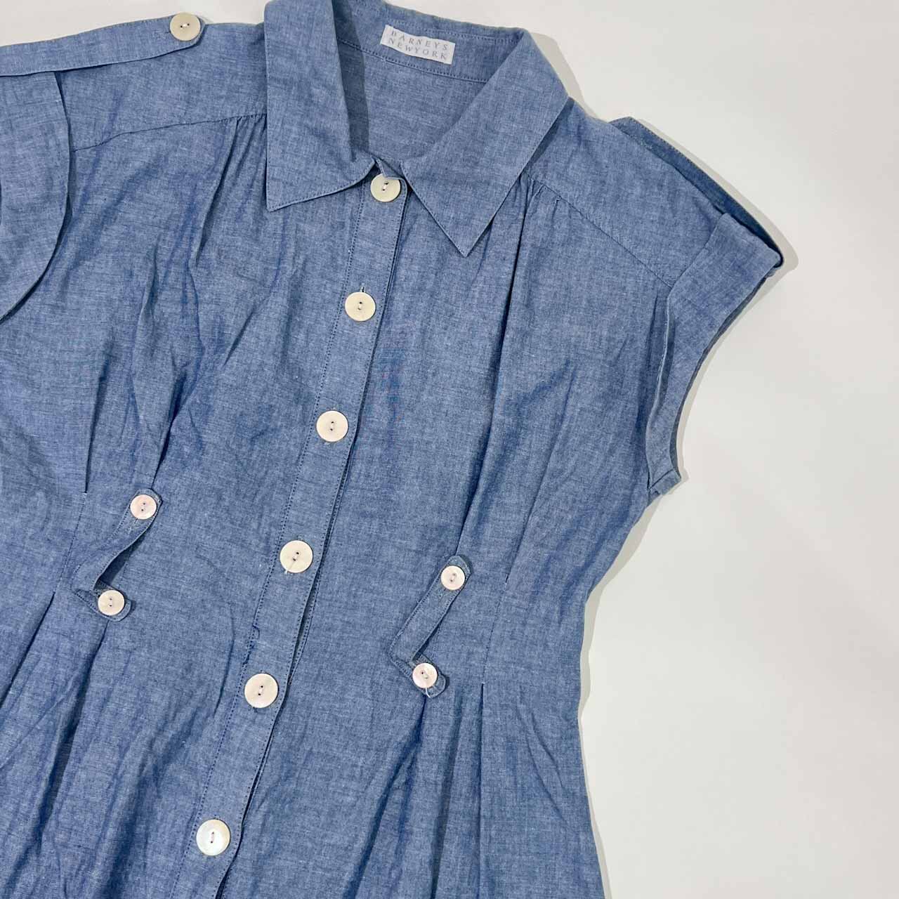 90s BARNEYS NEWYORK バーニーズニューヨーク フレンチスリーブ シャンブレー シャツ ワンピース/ブルー レディース ビンテージ
