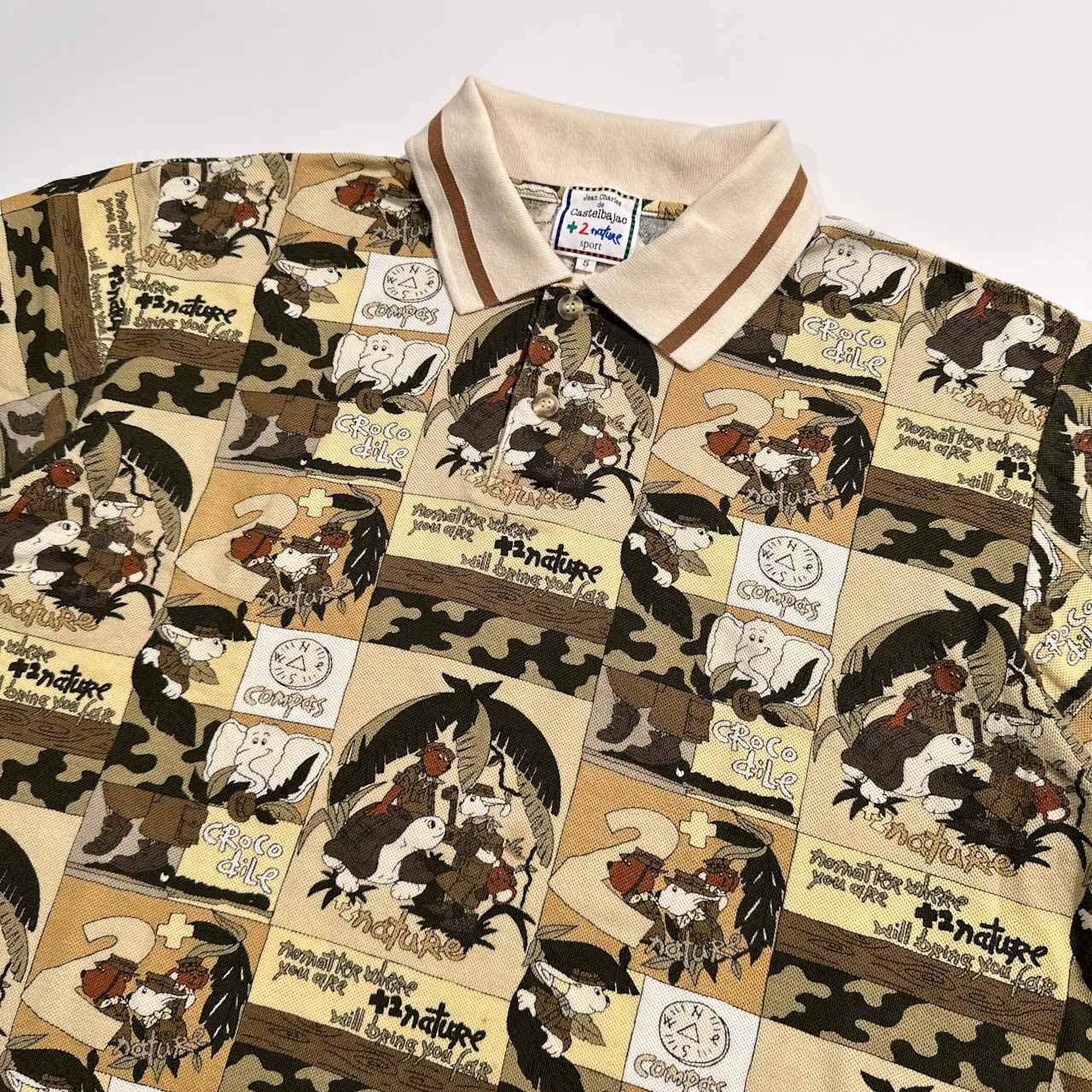 CASTELBAJAC カステルバジャック 総柄 半袖 ポロシャツ サイズ 5 /メンズ/鹿の子コットン/日本製