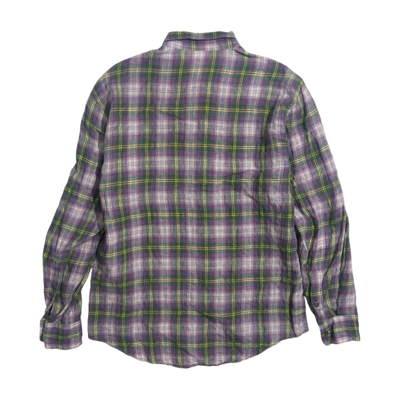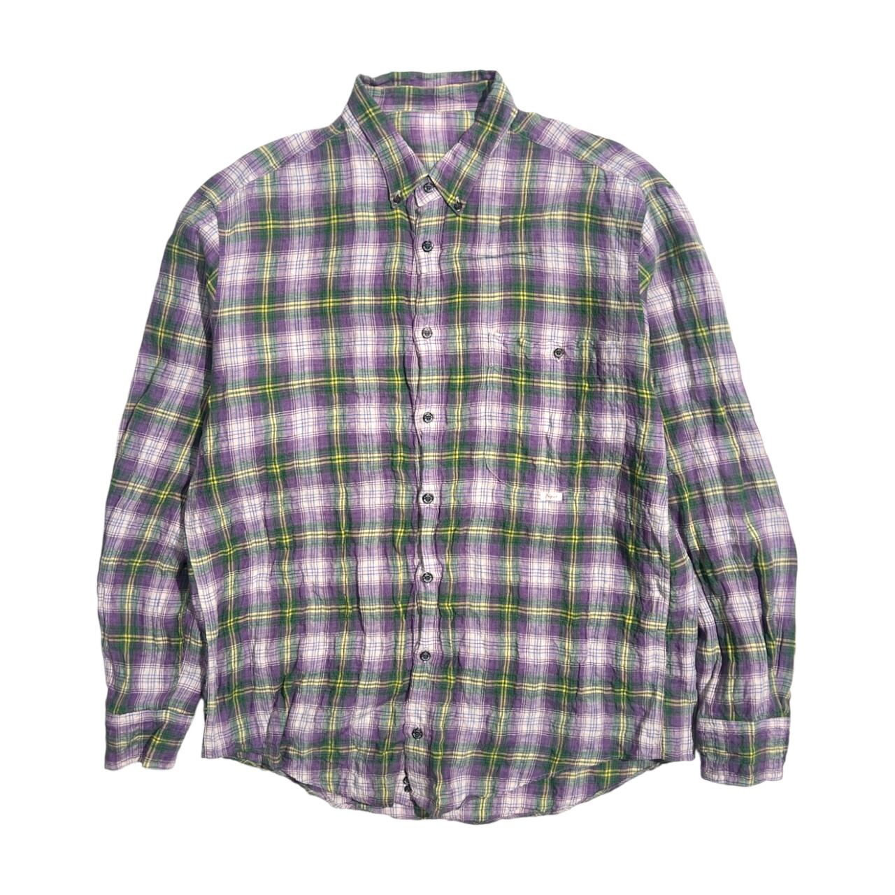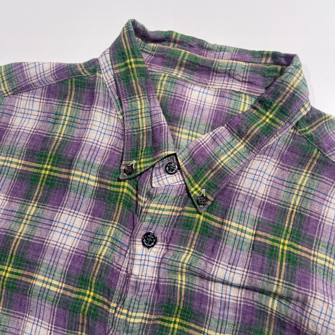 PAPAS パパス マドラスチェック リネン BD 長袖シャツ M/パープル
