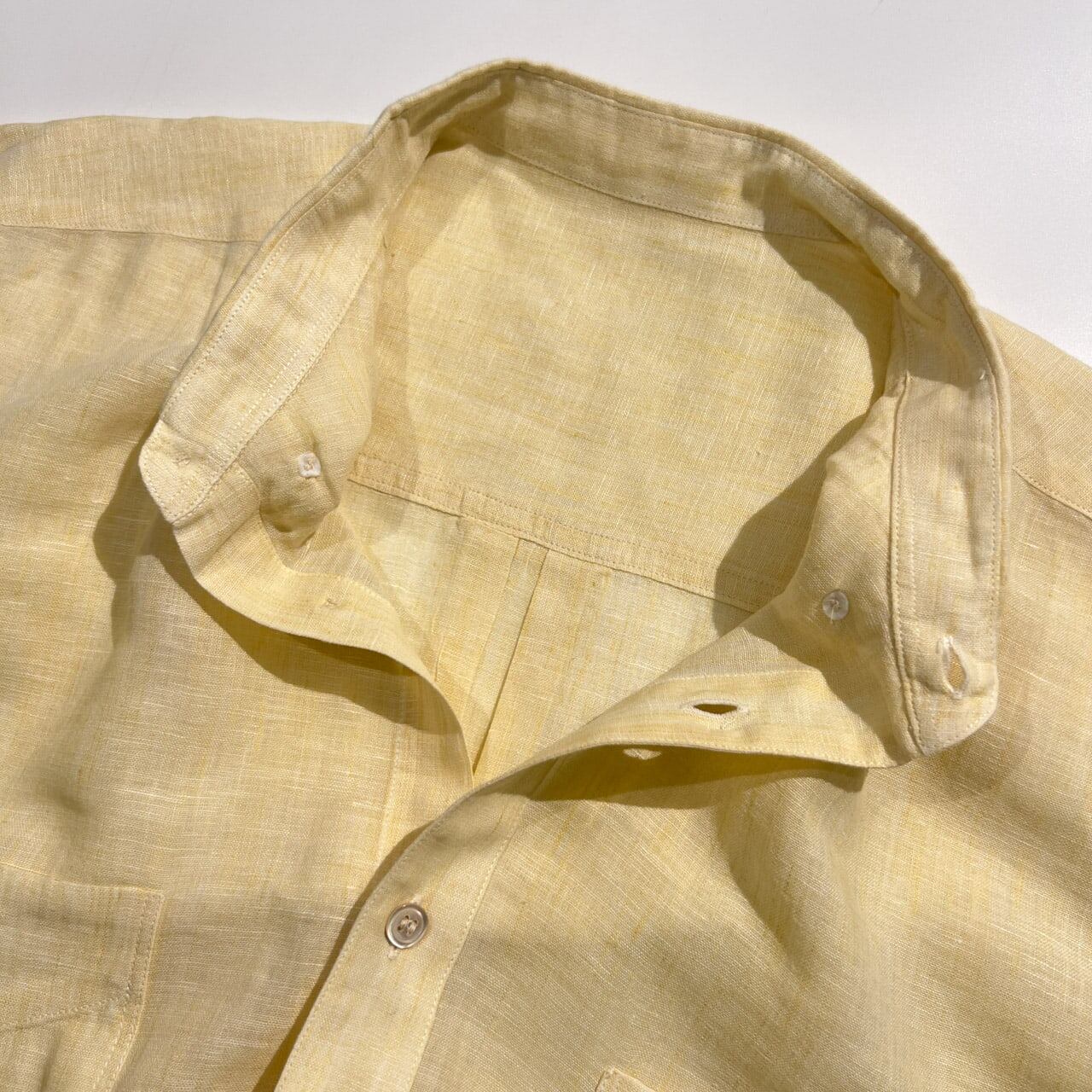 PAPAS パパス リネン&コットン BD 半袖シャツ L/イエロー