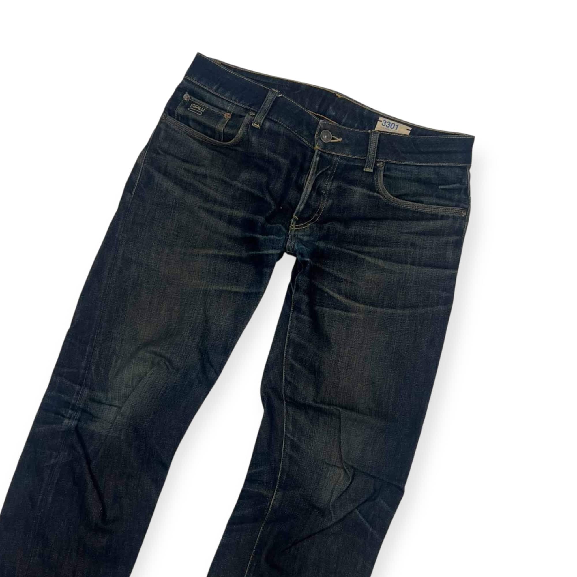 G-STAR RAW ジースターロウ 3301 ヒゲ ハチノス ボタンフライ デニム パンツ W90/インディゴ メンズ