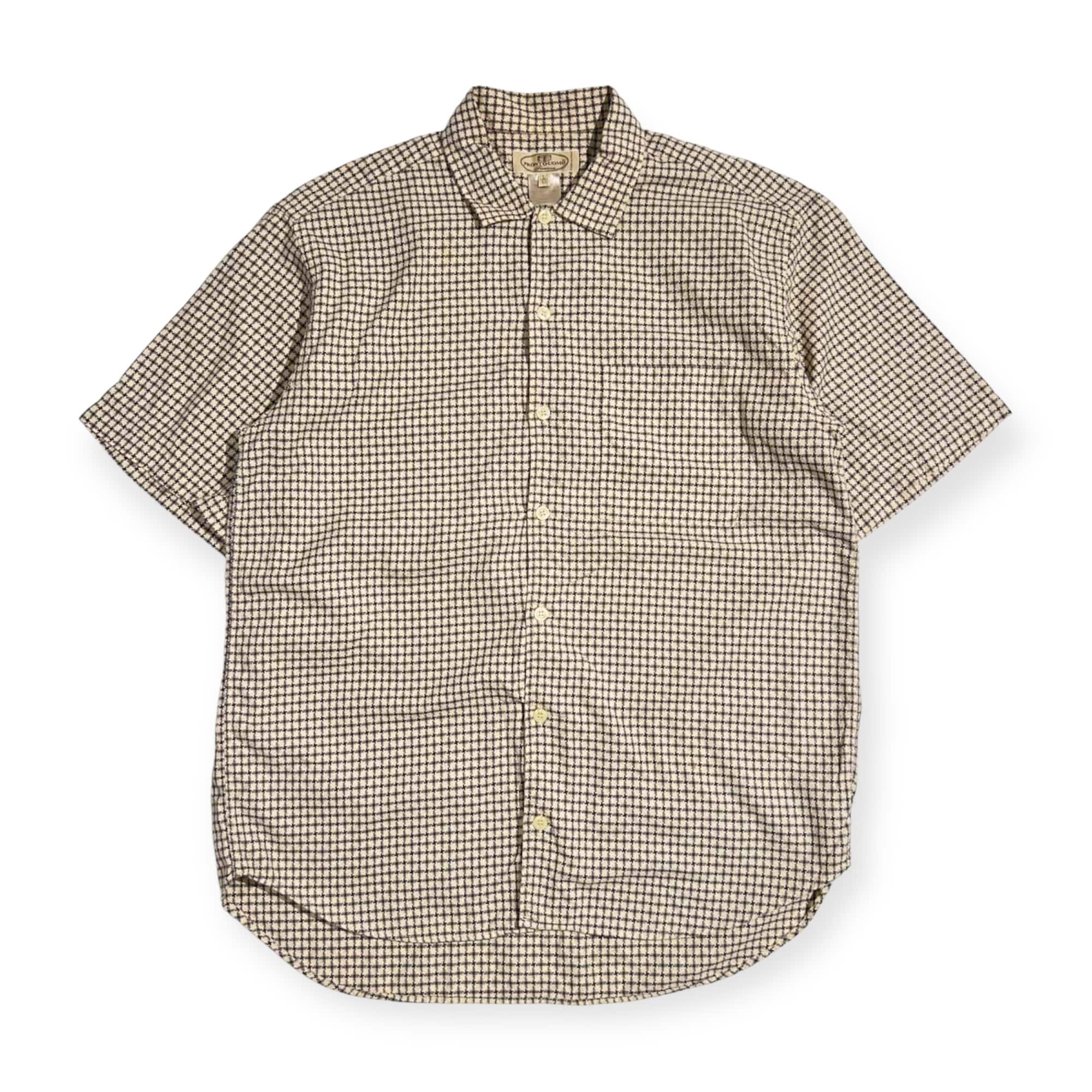 90s イタリア製 PRONTO-UOMO プロントウォモ グレンチェック 半袖シャツ L/52 /ベージュ系 メンズ ビンテージ