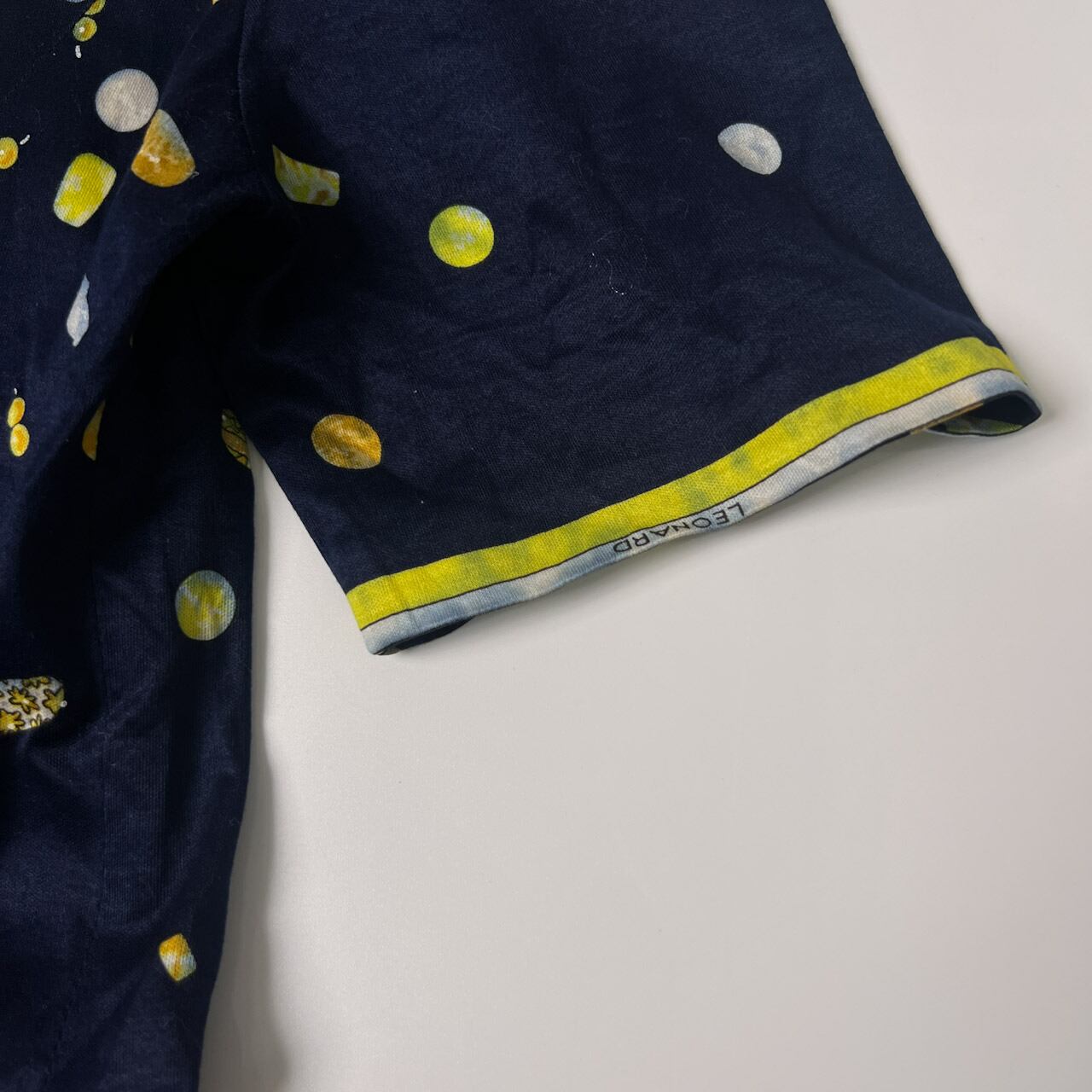 LEONARD FASHION レオナールファッション 総柄 コットン 半袖ワンピース M/ネイビー