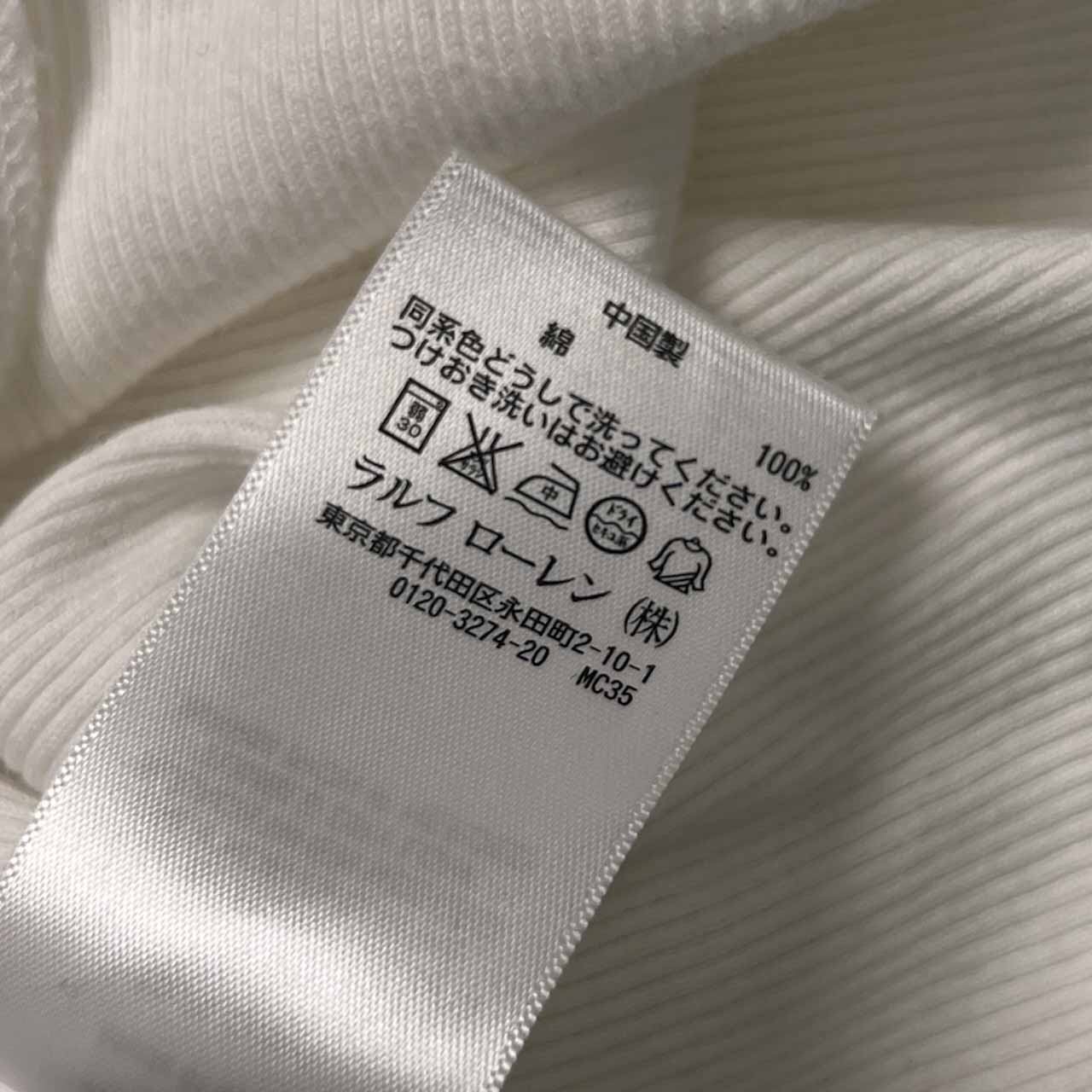 RALPH LAUREN ラルフローレン ポニー刺繍 バンドカラー リブ編み ヘンリーネック 長袖シャツ カットソー S/ホワイト メンズ