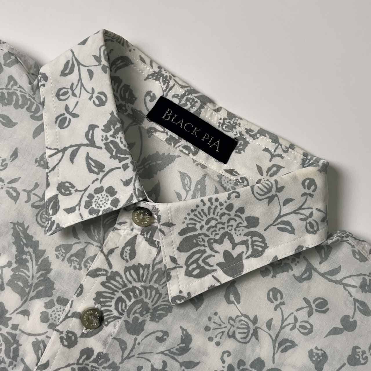 BLACK PIA ブラックピア ボタニカル総柄 半袖シャツ M/ホワイト グレー/薄手