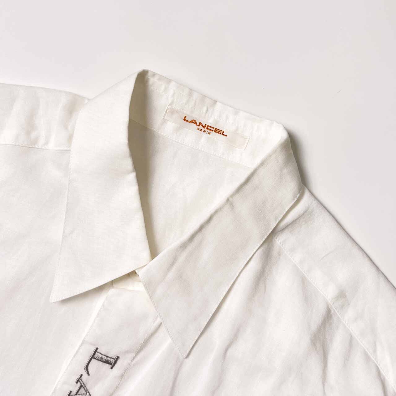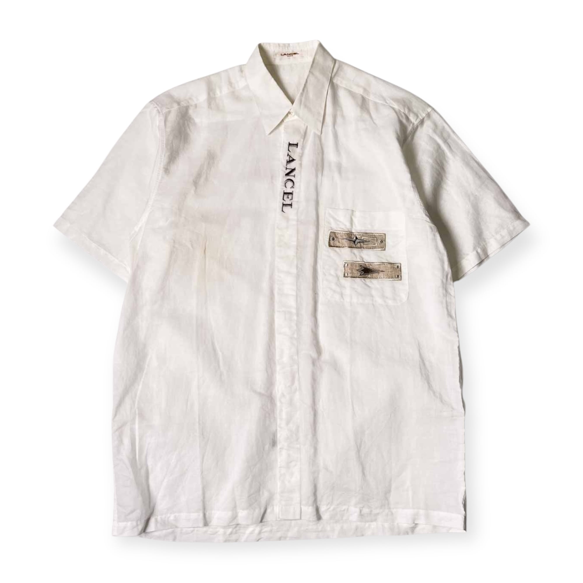 リネン混 LANCEL PARIS ランセル 刺繍デザイン 比翼 半袖シャツ M/ホワイト メンズ 薄手