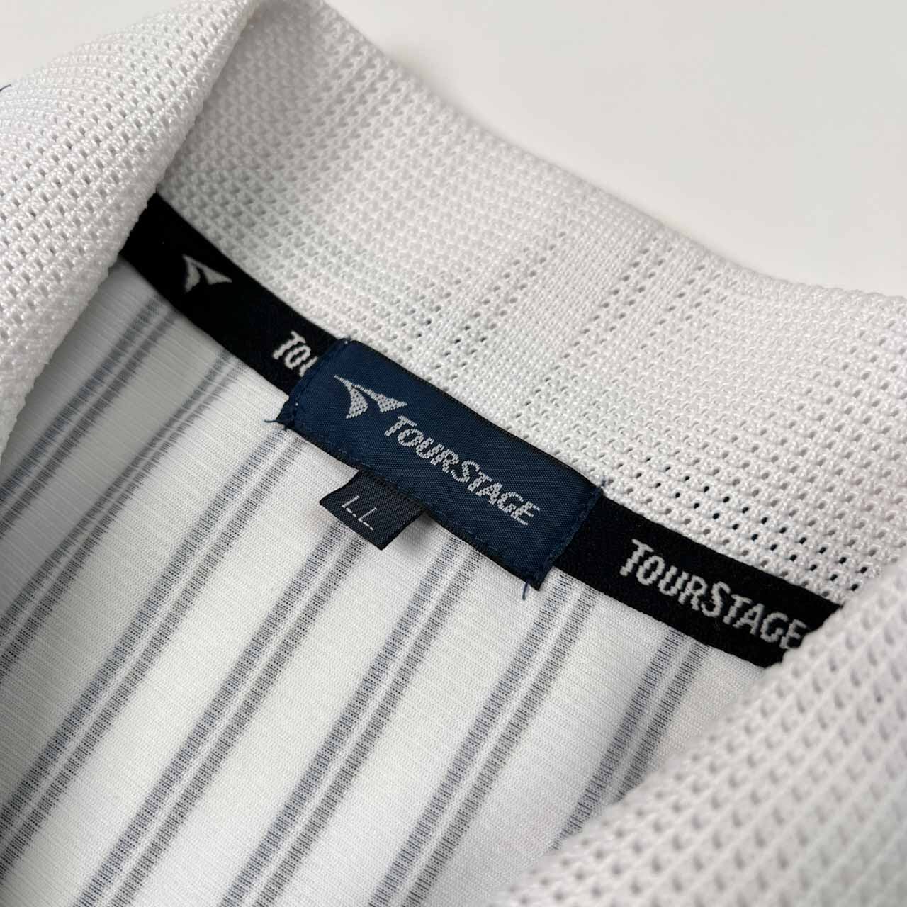 TOURSTAGE ツアーステージ ストライプ柄 襟メッシュ 半袖 ポロシャツ サイズ LL /ゴルフ/メンズ/ホワイト×ブルー