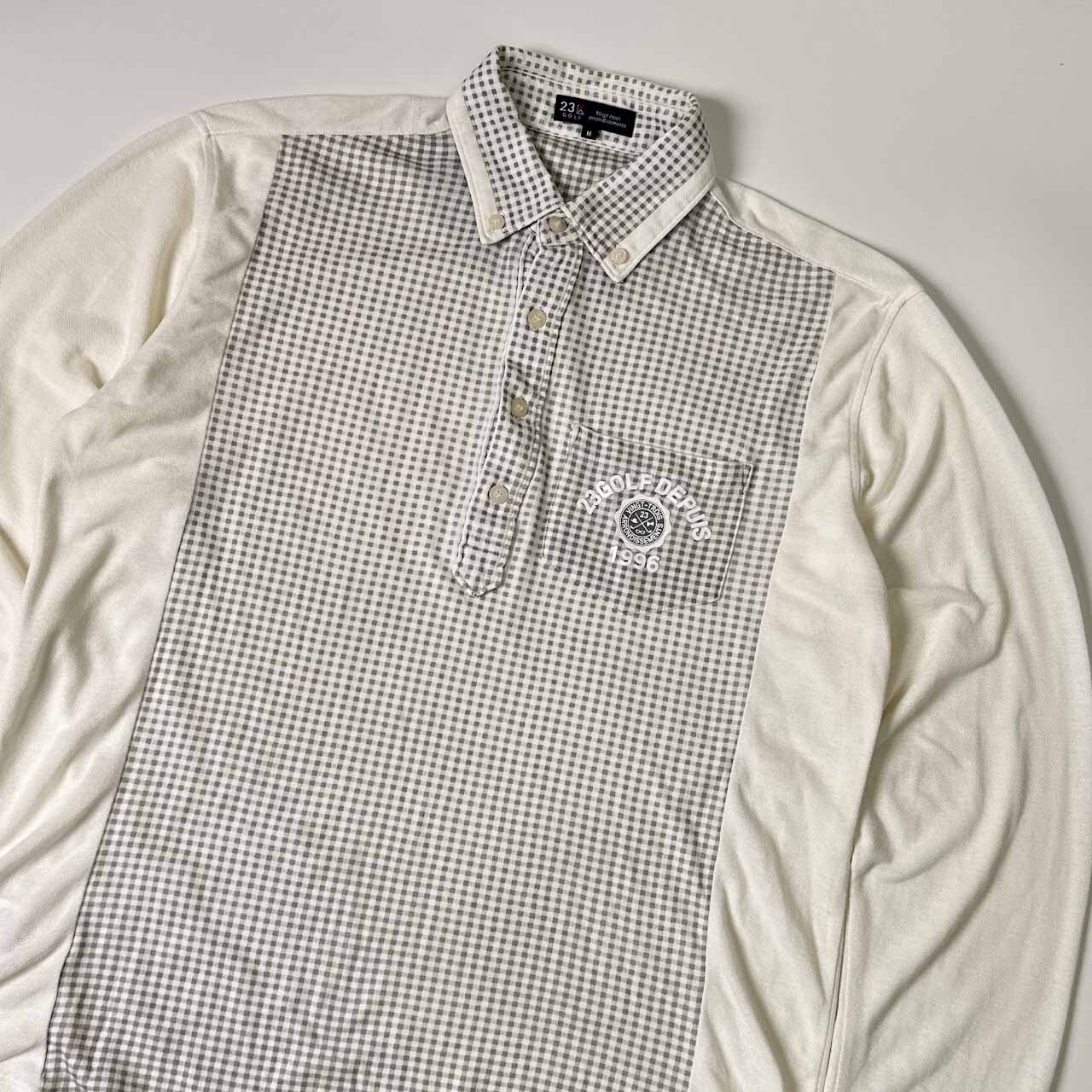 23区 GOLF ニジュウサンク チェック BD ボタンダウン 長袖 シャツ M/ホワイト×グレー メンズ ゴルフ